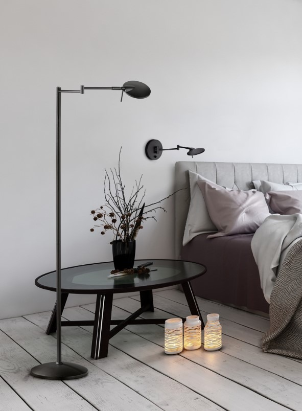 Een fraaie wandlamp van het Duitse verlichtingsmerk Trio. Deze lamp kan in veel woonruimtes geplaatst worden, denk bijvoorbeeld aan in de slaapkamer als nachtlampje of in de woonkamer naast fauteuil of bank om een boekje naast te lezen. Dankzij de ruime verstelmogelijkheden, schijnt het licht precies daar waar u het nodig heeft. De lamp is gemaakt van metaal en uitgevoerd in de kleur mat zwart. Deze wandlamp met design uitstraling past in zowel klassieke als moderne interieurs. Dit wandlampje wordt inclusief lichtbron geleverd, te weten een SMD-LED lamp met een wattage van 8W. Het warmwitte (3000K) licht kan door de geïntegreerde dimmer traploos gedimd worden om de juiste sfeer te creëren.