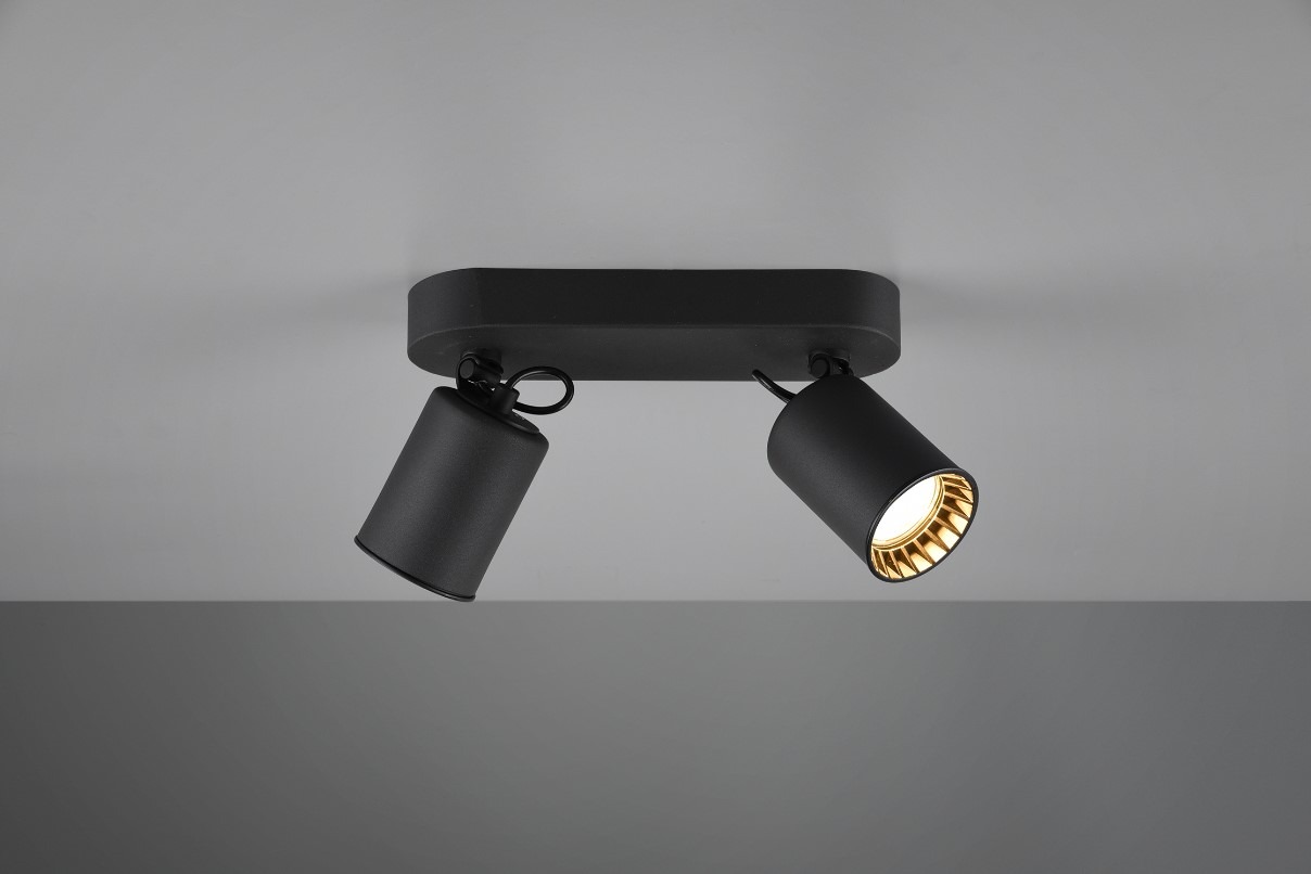 Een metalen opbouwspot met twee lichtpunten van het in Duitsland opgerichte verlichtingsmerk Trio. Deze lamp is uitgevoerd in de kleur mat zwart en heeft een uniek dessin aan de binnenkant welke zorgt voor een eigentijdse uitstraling. Daar deze spot bij uitstek voor functioneel licht zorgt, is deze toepasbaar in verschillende woonruimten, zoals bijvoorbeeld de hal, woonkamer of slaapkamer. Doordat de spots draaibaar én kantelbaar zijn, kunnen de lichtbundels eenvoudig in de juiste richting worden gericht. Deze opbouwspot wordt exclusief GU10-lichtbronnen geleverd. U kunt hierdoor zelf bepalen hoeveel licht u wilt hebben, mits de lichtbronnen het maximaal vermogen van 35W niet overschrijden. Deze armatuur is uitsluitend geschikt voor plafondmontage. In dezelfde serie zijn ook opbouwspots met 1, 3 of 4 lichtpunten verkrijgbaar.