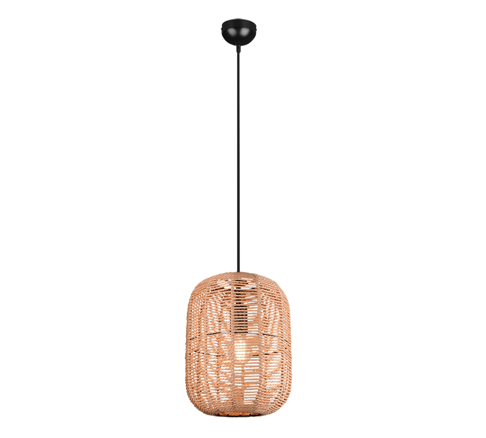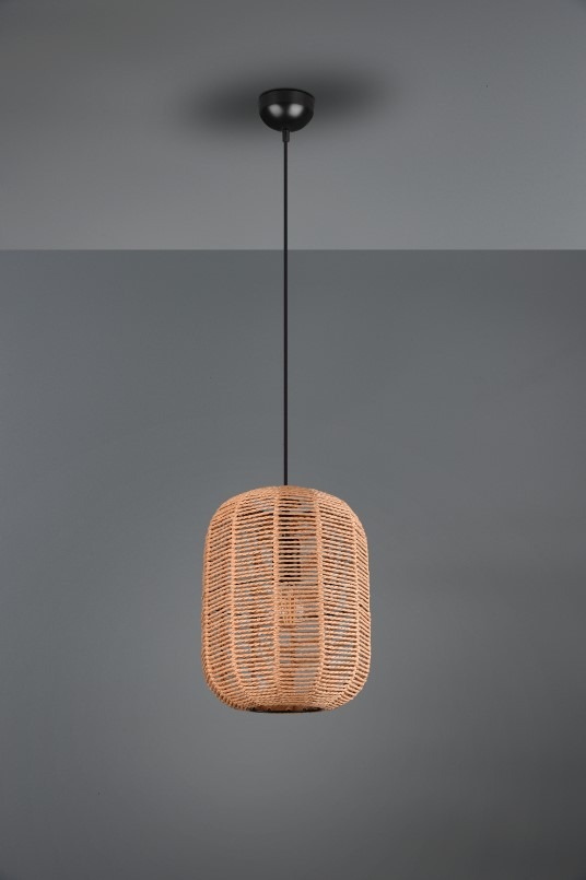 Een trendy hanglamp van het Duitse verlichtingsmerk Trio. Deze hanglamp is gemaakt van metaal en uitgevoerd in de mat zwart. De kap met organische vorm is vervaardigd uit sisal. Dit materiaal met lichte, naturelle kleurnuances geeft een natuurlijke en rustige uitstraling. De hanglamp kan goed worden toegepast boven de eettafel in de eet- of woonkamer. De kap biedt plaats aan één E27-fitting welke geschikt is voor een max. wattage van 40W. Deze lamp wordt exclusief lichtbron geleverd. U kunt hierdoor zelf bepalen hoeveel licht u wilt hebben, mits het maximale vermogen van 40W niet overschreden wordt. Wij adviseren in dit geval een energiezuinige LED lamp, deze is afzonderlijk bij te bestellen. De hanglamp kan in de hoogte aangepast worden.