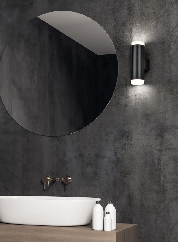 Een badkamerlamp met strakke vormgeving van het in Duitsland opgerichte verlichtingsmerk Trio. Deze functionele wandlamp leent zich uitstekend als spiegelverlichting. Deze up- en downlight verlicht de badkamer sfeervol en geeft de ruimte een luxueuze uitstraling. De wandlamp is gemaakt van mat zwart kunststof en wit acrylglas. Deze laatste zorgt voor de verspreiding van aangenaam niet-verblindend diffuus warm wit licht (3000K). De wandlamp geeft licht naar boven en naar onderen. De lamp wordt geleverd inclusief geïntegreerde SMD-LED lampen met een wattage van 4W en een lichtopbrengst van 340 lumen.