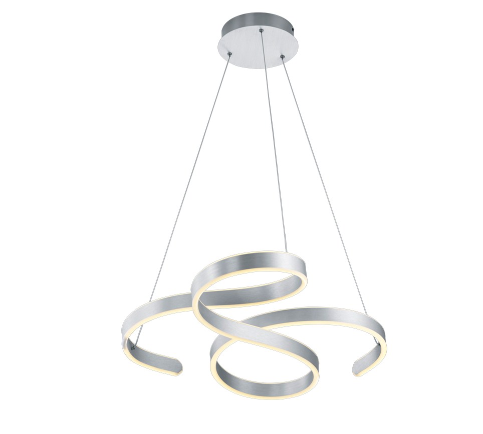 Een moderne hanglamp van het merk Trio. Deze hanglamp is gemaakt van metaal en uitgevoerd in de kleur geborsteld aluminium. Dit design met krullen zal een prachtstuk zijn in uw interieur. De lamp is zeer geschikt om toe te passen in de woonkamer of boven de eettafel in de eetkamer om u van functioneel licht te voorzien. Deze armatuur wordt inclusief lichtbron geleverd, te weten een geïntegreerde SMD-LED lamp met een wattage van 48W. De lichtsterkte kan via de conventionele lichtschakelaar op 3 verschillende niveaus ingesteld worden. De lamp kan variabel in hoogte aangepast worden. Let wel, deze hanglamp dient op een normale lichtschakelaar geplaatst te worden en is niet geschikt voor een externe dimmer.