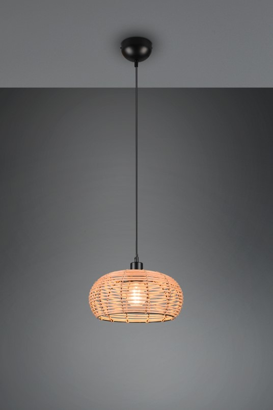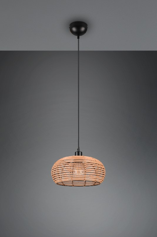 Een hanglamp van het Duitse verlichtingsmerk Trio. De kap van deze hanglamp met natuurlijke afwerking is gemaakt van rotan vlechtwerk. Dit ontwerp met lichte, naturelle kleurnuances geeft een rustige uitstraling. De hanglamp kan goed worden toegepast boven de eettafel in de eet- of woonkamer maar zal ook in de slaapkamer of hal niet misstaan. De royale kap biedt plaats aan één E27-fitting welke geschikt is voor een max. wattage van 40W. Wij adviseren in dit geval een energiezuinige LED-lamp, welke afzonderlijk is bij te bestellen. De hanglamp kan in de hoogte aangepast worden.