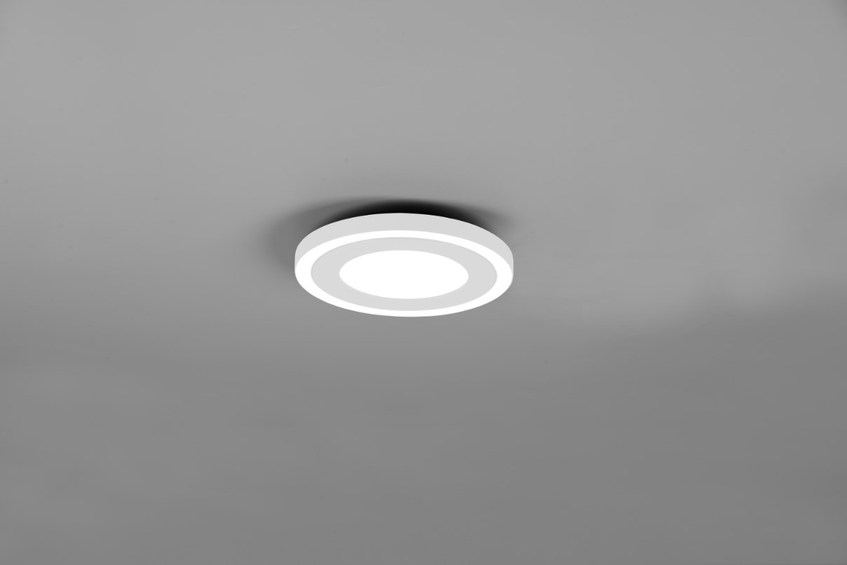 Een moderne plafondlamp van Trio welke ook geschikt is voor wandmontage. Dit ontwerp bewijst dat eenvoud ook heel mooi kan zijn. Deze plafonnière is vervaardigd uit kunststof en uitgevoerd in de kleur wit mat. De plafondlamp wordt inclusief geïntegreerde SMD-LED lampen geleverd. De lichtbronnen kunnen apart aan- en uitgeschakeld worden middels de normale lichtschakelaar. De lichtkleur van deze lamp bedraagt 4000K (Kelvin). Het effect daarvan wordt als neutraal wit beschreven. Let wel, deze plafondlamp dient op een normale lichtschakelaar geplaatst te worden en is niet geschikt voor een externe dimmer.