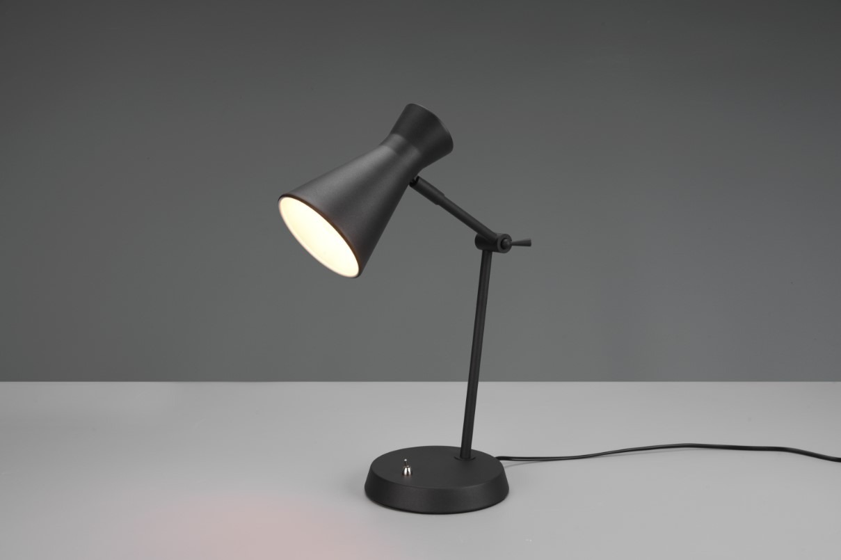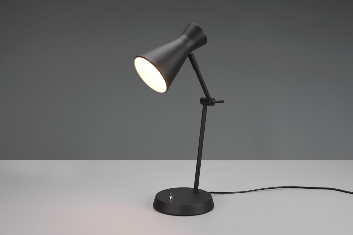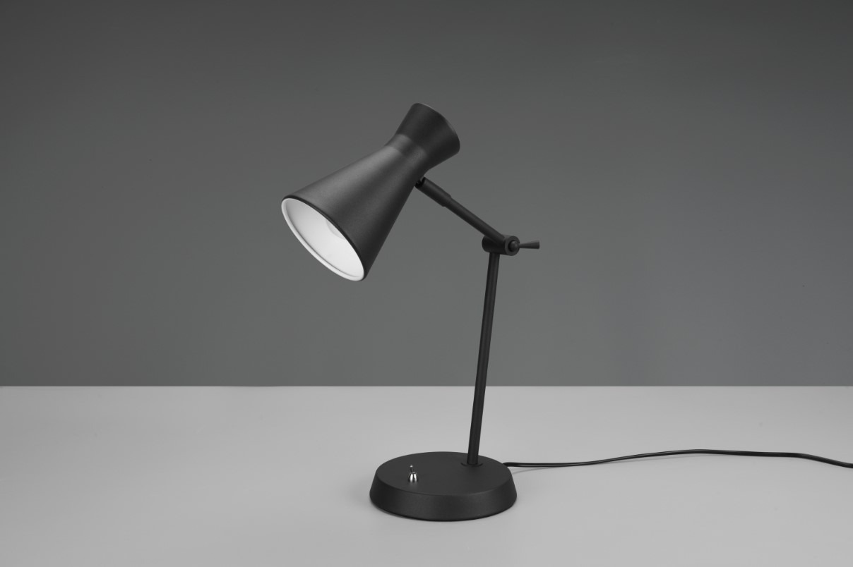 Met zijn minimalistische en subtiele vormgeving zet deze moderne tafellamp uit de nieuwe RL-collectie vakkundig de toon in elk interieur. Vervaardigd uit hoogwaardig metaal en uitgevoerd in de kleur mat zwart. De arm van deze bureaulamp kan met de stelknop aangepast worden. Het kapje heeft een diameter van 11,5 cm en biedt plaats aan één E27-fitting (max. 10W). Deze lamp wordt exclusief lichtbron geleverd. Op de voet bevindt zich een schakelaar. Dit voorkomt het zoeken naar een schakelaar langs het anderhalf meter lange snoer. De Enzo serie bestaat uit hanglampen, tafellampen en vloerlampen.