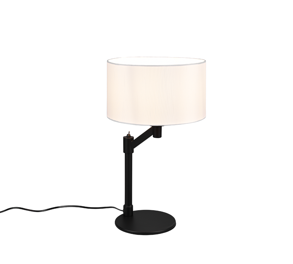Deze tafellamp zorgt met zijn textielen lampenkap (diameter 28 cm) voor gezelligheid en sfeer. Het licht wordt via de witte kap zacht naar de omgeving uitgestraald. Deze schemerlamp kan goed worden geplaatst op een ladekast of nachtkastje. De lampenvoet is gemaakt van zwart metaal. De lamp wordt exclusief lichtbron geleverd. U kunt hierdoor zelf bepalen hoeveel licht u wilt hebben. De lamp heeft één E27-fitting die geschikt is voor een max. wattage van 60W. De Cassio-serie van Trio bestaat uit tafel-, vloer- en wandlampen.