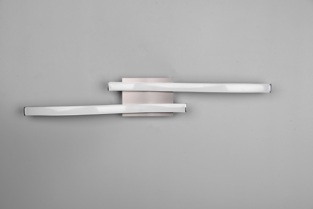 Plafonnière Route heeft een modern, elegant gebogen design. Deze plafondlamp verfraait elke woonruimte. De twee lichtpunten stralen zacht niet-verblindend licht uit. De lichtkleur van de lichtbronnen bedraagt 4.000 Kelvin, het effect hiervan wordt omschreven als neutraal wit. De plafondlamp is gemaakt van nikkelkleurig metaal en heeft een matte afwerking. Let wel, deze plafondlamp dient op een normale lichtschakelaar geplaatst te worden en is niet geschikt voor bediening door een externe dimmer.