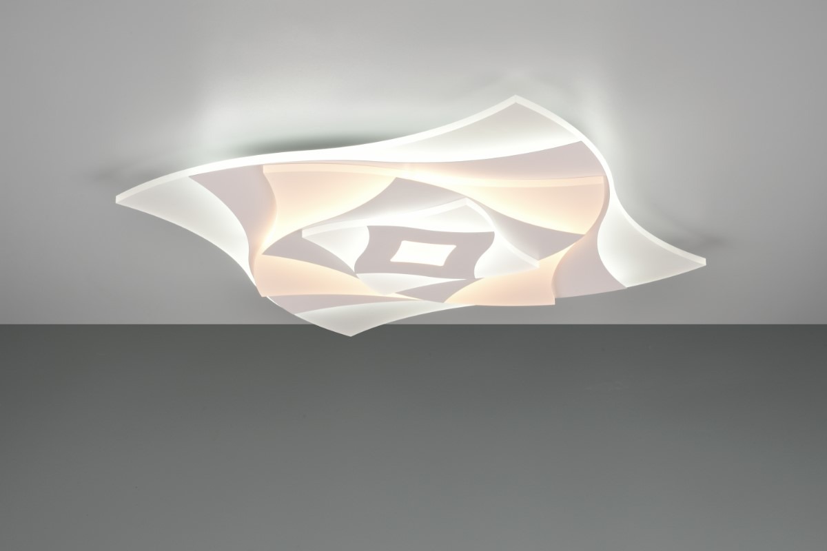Een moderne wit metalen plafondlamp van het Duitse verlichtingsmerk Trio. Deze plafonnière is voorzien van een zeer krachtige geïntegreerde LED-lamp van 56 watt. Met de meegeleverde afstandsbediening is het mogelijk het licht traploos te dimmen. De lichtkleur (lichttemperatuur in graden Kelvin) is eveneens instelbaar met de afstandsbediening. Dankzij de geheugenfunctie wordt de laatste instelling opgeslagen en gebruikt wanneer de lamp opnieuw wordt ingeschakeld. Met de conventionele lichtschakelaar kan de helderheid aangepast worden op drie niveaus (25% - 50% - 100%). Dit maakt dat Akita niet geschikt is voor gebruik met een externe dimmer.