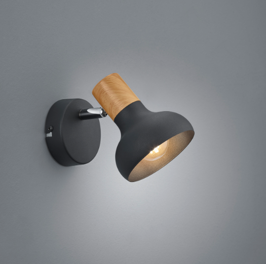 Een spotlamp van het Duitse verlichtingsmerk Trio. De lamp is gemaakt van metaal in een mooie mat zwarte kleur met een houtelement. Er kan een lichtbron met fittingmaat E14 in geplaatst worden van max. 1x 10W (exclusief). De spot kan goed worden geplaatst in verschillende ruimtes zoals hal, slaapkamer en woonkamer, om bijvoorbeeld te zorgen voor mooie accentverlichting. De lamp kan zowel aan de wand als aan het plafond worden bevestigd.