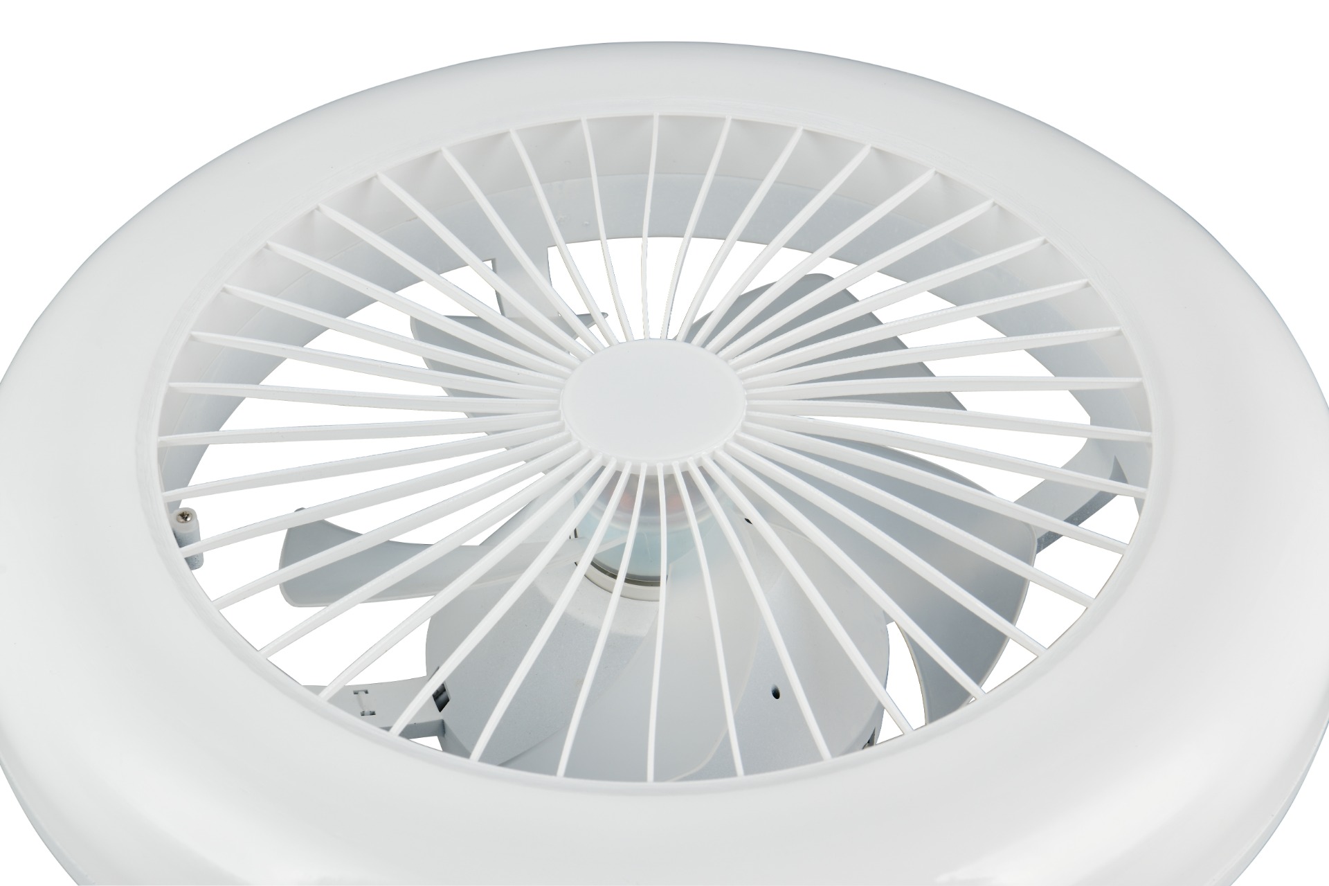 Deze Moraventilatorlamp is echt van alle markten thuis. Een ventilator en lamp in één en door het moderne design prachtig om te zien. De buitenring van de lamp geeft mooi licht af wat met de meegeleverde afstandsbediening in te stellen is tussen 2700K - 6000K en ook nog eens dimbaar is. Met functies zoals timers, nachtalmpfunctie en 3 snelheden kan je echt alle kanten op. De ventilator en lamp zijn afzonderlijk van elkaar te gebruiken ook, dus het licht hoeft niet altijd aan als de ventilator aanstaat en vice versa. Een verrijking voor de woon- of slaapkamer, zeker voor de warme nachten.
