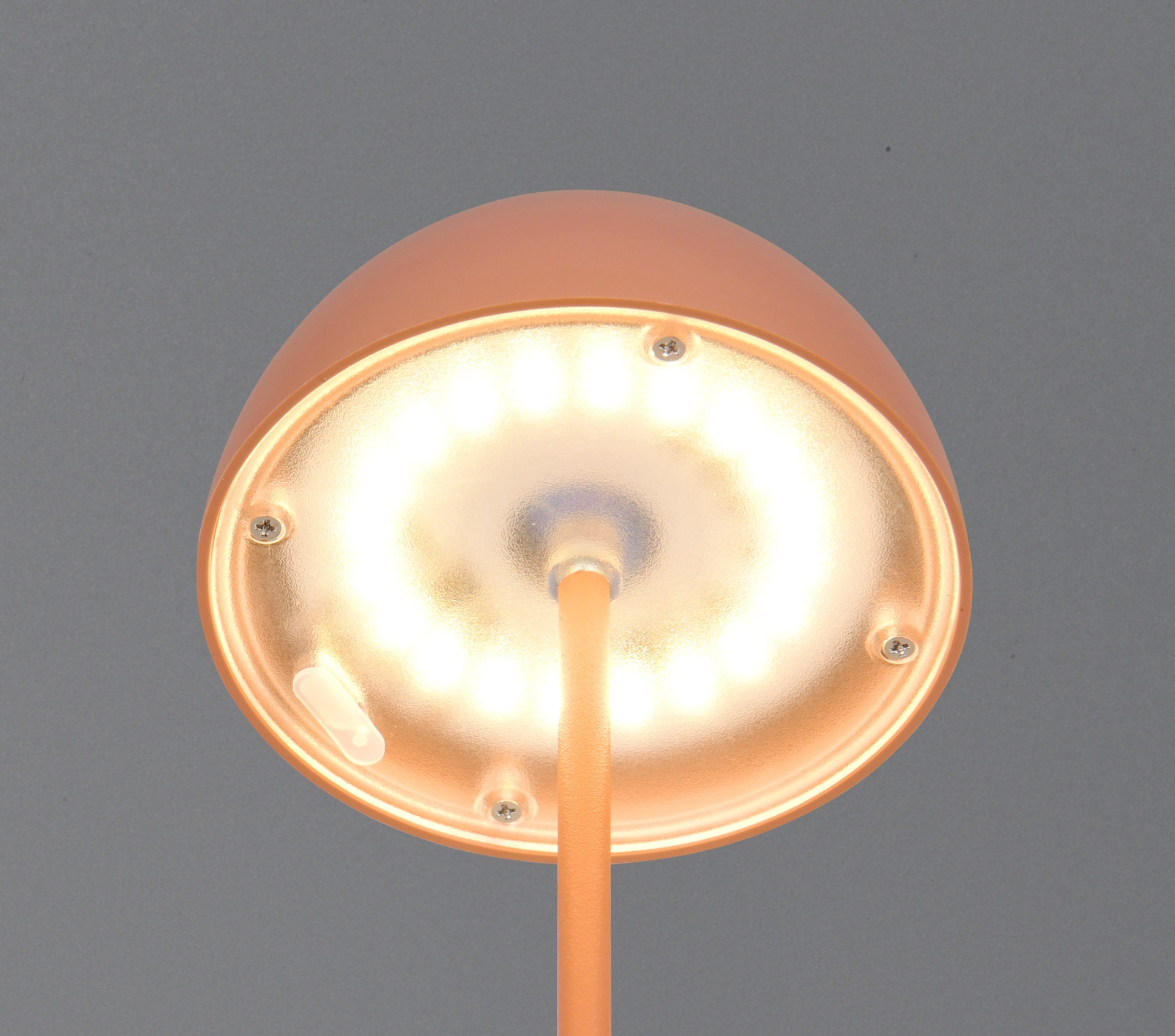 Deze leuke, oplaadbare, tafellampen van Trio zijn echt een must-have voor in de tuin. Je kan ze namelijk eenvoudig opladen via de meegeleverde USB kabel om vervolgens overal mee naar toe te nemen. Zo heb je overal in je tuin licht zonder dat je direct stroom nodig hebt. De lampjes zijn IP44 en dus geschikt voor buiten. De lamp kan je ook nog eens eenvoudig dimmen door de dimmer op het armatuur, fijn want zo kan je het licht aanpassen naar wens. Door de memoryfunctie onthoud de lamp de laatste stand waarin hij uit is gegaan en zal hij vervolgens bij het inschakelen weer op diezelfde stand aangaan. De Ortiz is beschikbaar in meerdere kleuren en het betreft hier een prachtige abrikoosachtige kleur.