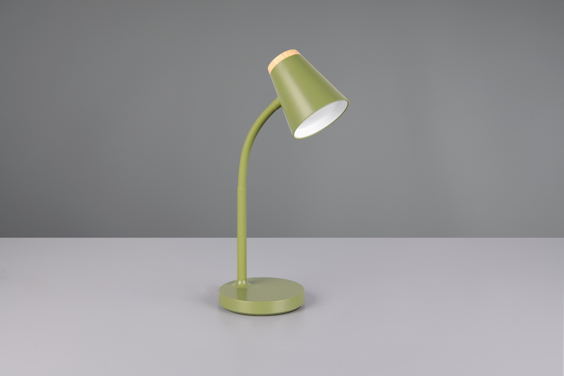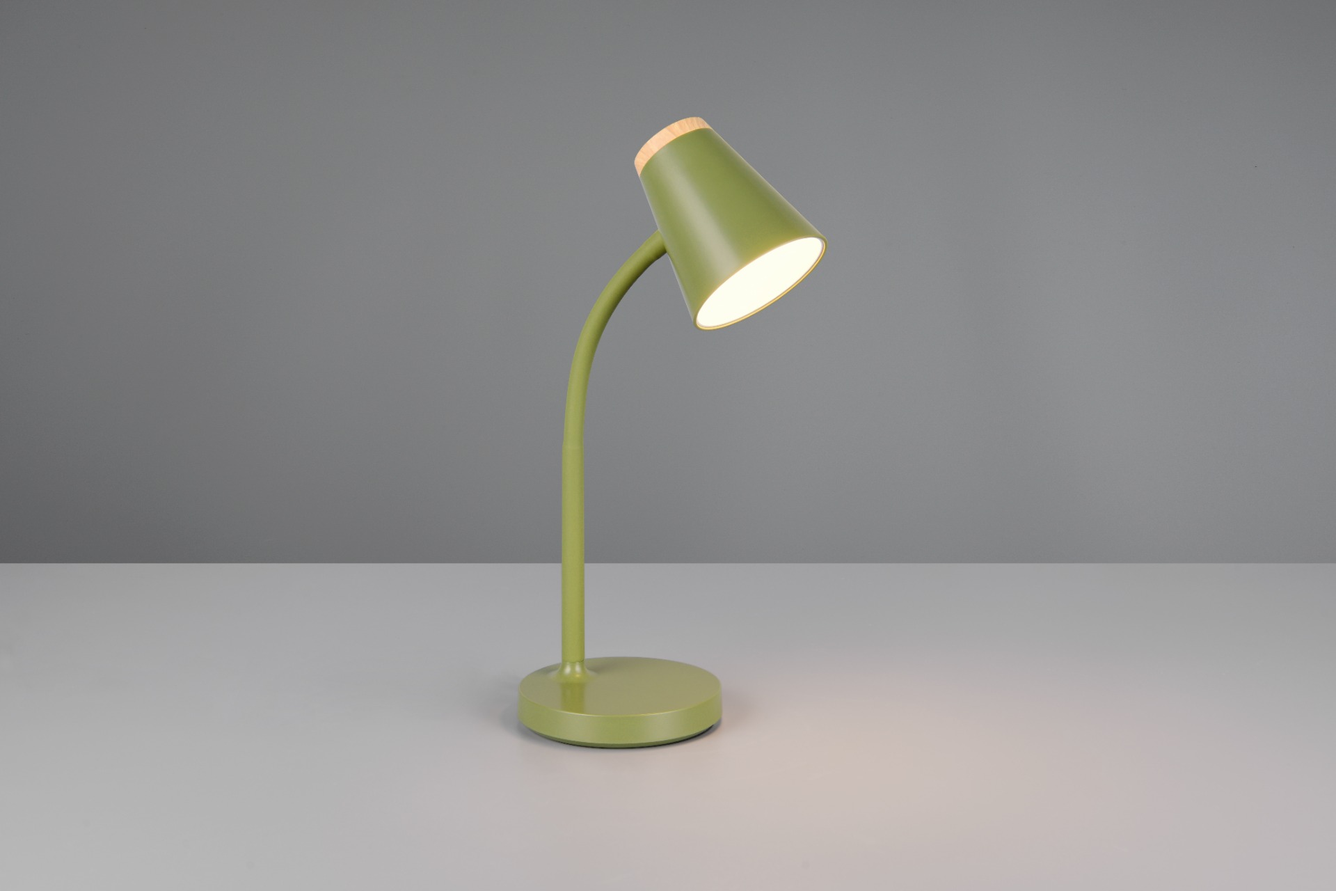 Een handige tafellamp uit de RL collectie van het Duitse merk Trio. De Pongo tafellamp heeft een hoogte van 36 cm en wordt geleverd inclusief energiezuinige SMD LED-verlichting. Aan de achterzijde van de kap bevindt zich een handige aan/uit-schakelaar voor eenvoudig gebruik. Dankzij de flexibele, verstelbare arm kunt u de lamp eenvoudig in de gewenste positie buigen, ideaal voor lezen, werken of sfeerlicht. De lamp is gemaakt uit groen kunststof en is aan de achterzijde afgewerkt met een imitatie houten detail. Deze combinatie zorgt voor een moderne, maar landelijke uitstraling die perfect past in elke ruimte. Met een IP20-classificatie is de Pongo geschikt voor gebruik in droge, stofvrije omgevingen.