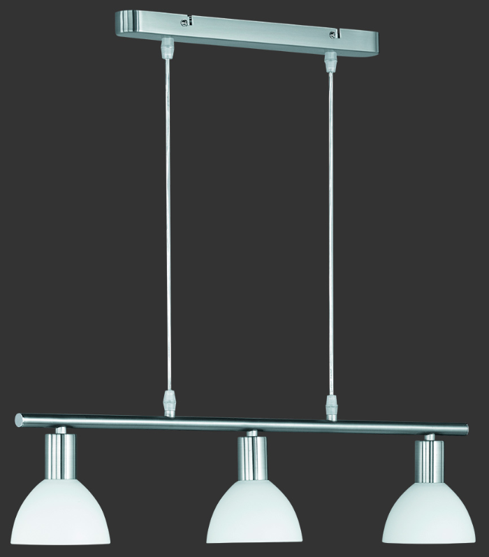 Dit is een moderne hanglamp uit de RL-collectie van het merk Trio. De behuizing van deze hanglamp is gemaakt van metaal in de kleur nikkel-mat. De kappen zijn gemaakt van glas in de kleur wit. De drie E14-fittingen in deze lamp zijn geschikt voor een maximaal wattage van 40W. De lamp wordt exclusief lichtbronnen geleverd. Een goede plek voor deze hanglamp is bijvoorbeeld in de eetkamer boven de eettafel.