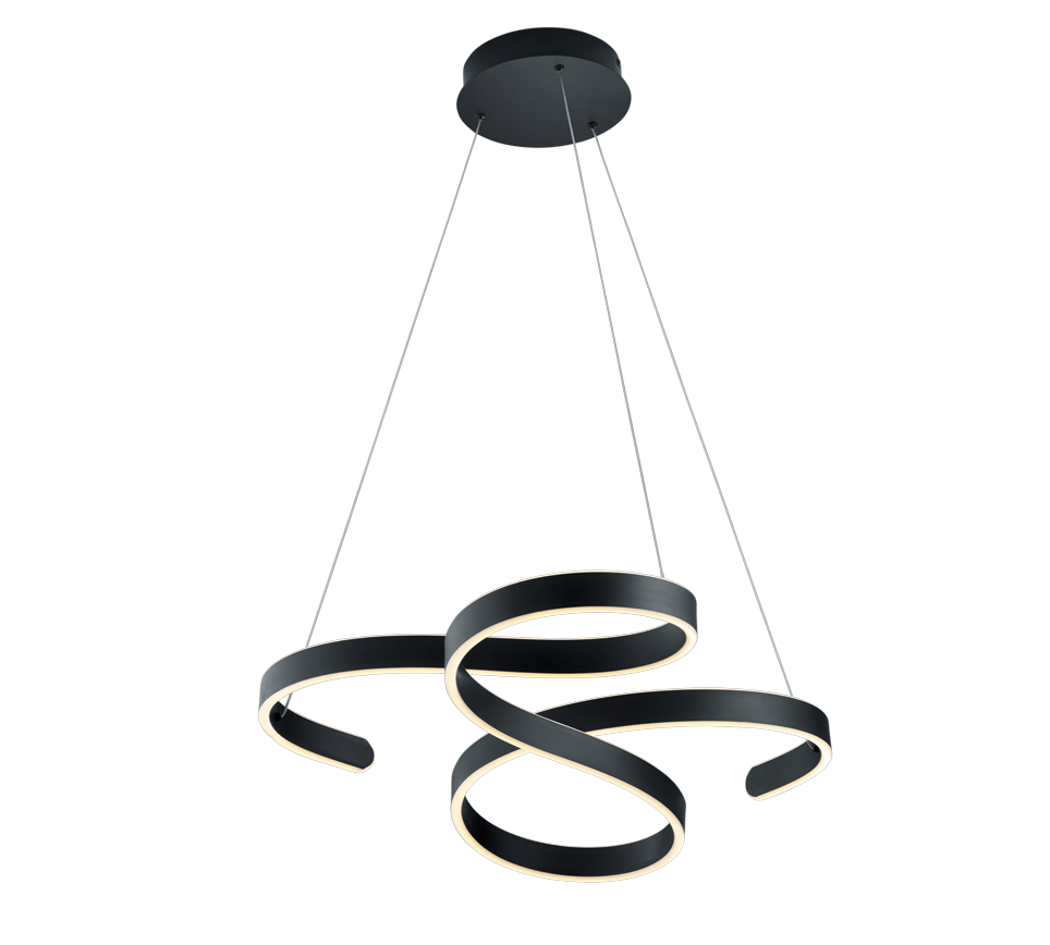 Een moderne hanglamp van het merk Trio. Deze hanglamp is gemaakt van metaal en uitgevoerd in de kleur antraciet. Dit design met krullen zal een prachtstuk zijn in uw interieur. De lamp is zeer geschikt om toe te passen in de woonkamer of boven de eettafel in de eetkamer om u van functioneel licht te voorzien. Deze armatuur wordt inclusief lichtbron geleverd, te weten een geïntegreerde SMD-LED lamp met een wattage van 48W. De lichtsterkte kan via de conventionele lichtschakelaar op 3 verschillende niveaus ingesteld worden. De lamp kan variabel in hoogte aangepast worden. Let wel, deze hanglamp dient op een normale lichtschakelaar geplaatst te worden en is niet geschikt voor een externe dimmer.