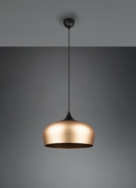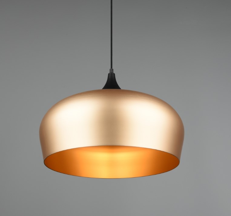 Een opvallende hanglamp in een leuke kleur uit de collectie van Trio. Deze hanglamp is gemaakt van aluminium in een matte messing kleur. De lamp wordt exclusief lichtbron geleverd en is geschikt voor max. 1x 40W met E27 fitting. Deze lamp kan goed worden geplaatst in de eetkamer boven een mooie eettafel of elders in de woonkamer. De lamp is een echte blikvanger in het interieur.