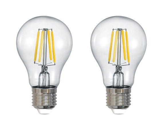 Een set van 2 transparante LED lamp met standaard vorm en filament van het Duitse verlichtingsmerk Trio. Deze lichtbron is gemaakt van glas. Deze lamp heeft een E27-fitting (grote fitting) en een wattage van 4W. De lichtopbrengst bedraagt 470 lumen en de lichttemperatuur is 3000 Kelvin (warm wit). De lamp is niet dimbaar.