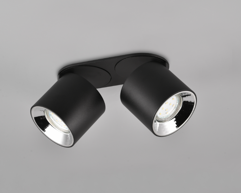 Een spotlamp van het Duitse verlichtingsmerk Trio. De lamp is gemaakt van metaal in een mat zwarte kleur. Er kunnen twee lichtbronnen met fittingmaat GU10 in geplaatst worden van max. 2x 10W (exclusief). De spot is geschikt voor plafondmontage en kan op twee manieren worden bevestigd (zie foto's), direct op het plafond of met een stuk ertussen. De spot kan goed worden geplaatst in verschillende ruimtes zoals hal, slaapkamer en woonkamer, om bijvoorbeeld te zorgen voor mooie accentverlichting.