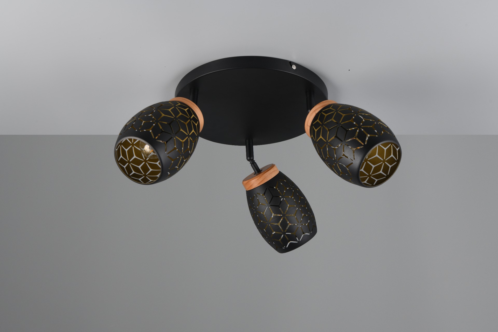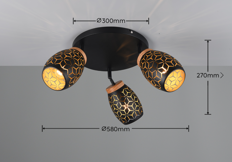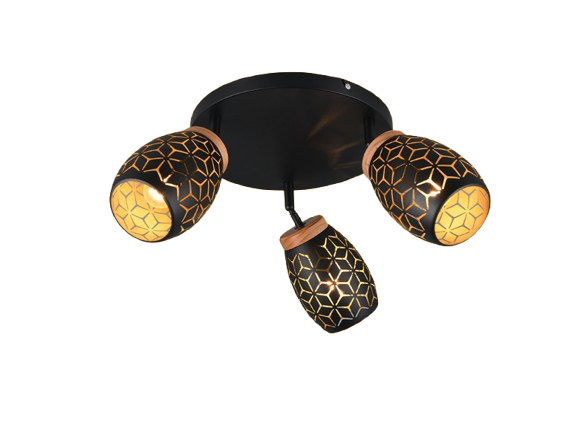De Bidar opbouwspot met drie lichtpunten zorgt voor een warme en gezellige sfeer in uw huis. Door de mooie patronen schijnt het licht op een zachte manier naar buiten. Dit geeft een bijzonder en speels lichteffect in de woon of slaapkamer. De lamp heeft natuurlijke houten accenten die zorgen voor een warm en knus gevoel. Het goud-zwarte metaal in combinatie met het hout en het moderne ontwerp maakt deze opbouwspot een echte blikvanger. De Bidar past goed in verschillende woonstijlen en geeft uw interieur een stijlvol accent. De lamp wordt geleverd exclusief 3x E14 lichtbronnen (max. 10W). Plaats de plafondlamp op een externe dimmer en u zet moeiteloos de juiste lichtsfeer neer. Leuk om te combineren met alle andere lampen uit de Bidar collectie.