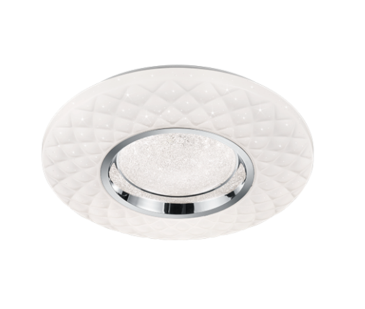 Een bijzondere plafondlamp uit de RL-collectie van het merk Trio. De plafondlamp is gemaakt van kunststof en heeft de kleur wit met starlight effect door de kristallen. De lamp heeft een ingebouwde SMD-LED lamp met een wattage van 22W. Met een geïntegreerde dimmer kan deze lamp traploos gedimd worden. Ook de lichtkleur is aanpasbaar van warm wit naar koelwit en heeft de lamp een nachtlampfunctie. Dit kan allemaal worden ingesteld met de meegeleverde afstandsbediening. Let wel, deze plafondlamp dient op een normale lichtschakelaar geplaatst te worden en is niet geschikt voor een externe dimmer.