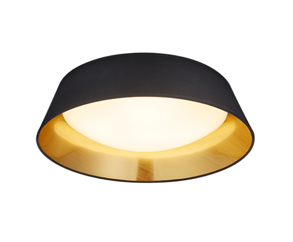 Een moderne plafondlamp uit de RL-collectie van het merk Trio. Deze plafonnière is gemaakt van textiel en kunststof. De lamp heeft een zwarte kleur met goudkleurige binnenkant en de kap van de lamp is wit. De Ponts heeft een LED lamp met een wattage van 18W. De ingebouwde SMD-LED lichtbron heeft een warmte van 3000K en heeft 1700 lumen. Door het strakke design past deze plafondlamp in veel verschillende interieurstijlen en ruimtes zoals de slaapkamer of woonkamer. Let wel, deze plafondlamp dient op een normale lichtschakelaar geplaatst te worden en is niet geschikt voor een externe dimmer.