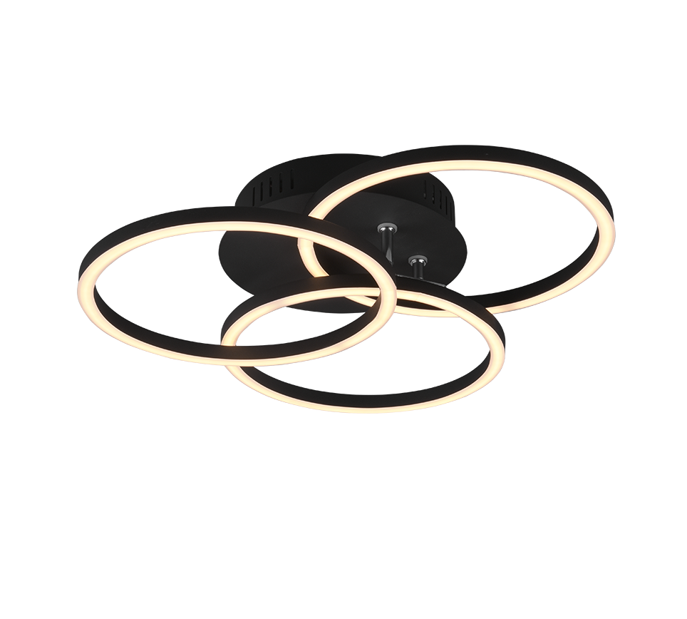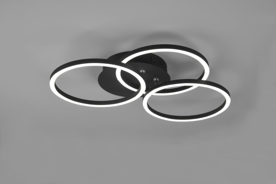 Een moderne plafondlamp van het merk Trio. Deze plafonnière is gemaakt van metaal en uitgevoerd in de kleur mat zwart en beschikt over verstelbare armen. De lamp kan goed worden toegepast in verschillende binnenruimtes, zoals bijvoorbeeld in de slaapkamer, woonkamer of ruime hal als basisverlichting. Deze plafondlamp wordt inclusief lichtbron geleverd, te weten een geïntegreerde SMD-LED lamp met een wattage van 27W. De lichtkleur (lichttemperatuur in graden Kelvin) van deze armatuur kan door de geïntegreerde dimmer traploos ingesteld worden. Bediening gaat gemakkelijk via de meegeleverde afstandsbediening. Deze plafonnière beschikt over een nachtfunctie. Let wel, deze plafondlamp dient op een normale lichtschakelaar geplaatst te worden en is niet geschikt voor een externe dimmer.