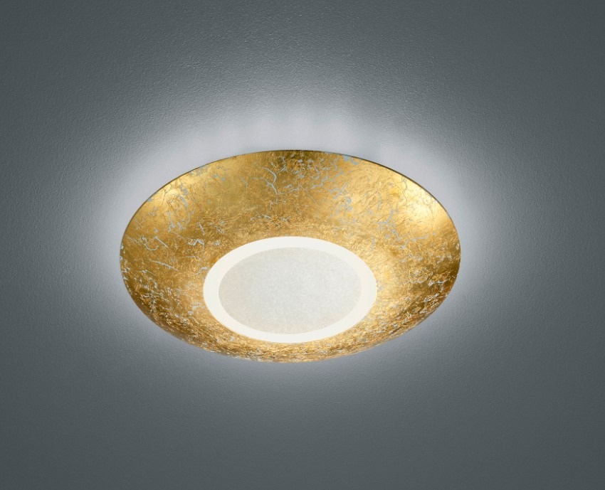 Een mooie goudkleurige opvallende plafondlamp uit de collectie van Trio. Deze plafondlamp is gemaakt van het materiaal metaal en heeft een transparant helder glas. De lamp wordt inclusief LED lichtbronnen geleverd met een wattage van 12W en 3,5W (SMD LED). Deze lamp kan goed worden geplaatst in de hal, woonkamer of slaapkamer. De lamp is geschikt voor wandmontage en geeft een gaaf effect in het interieur door de opvallende kleur en design.