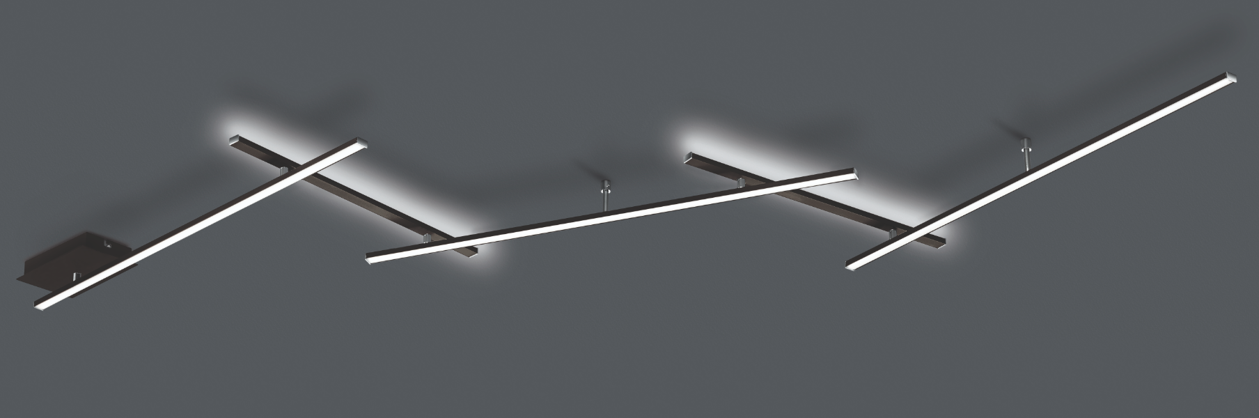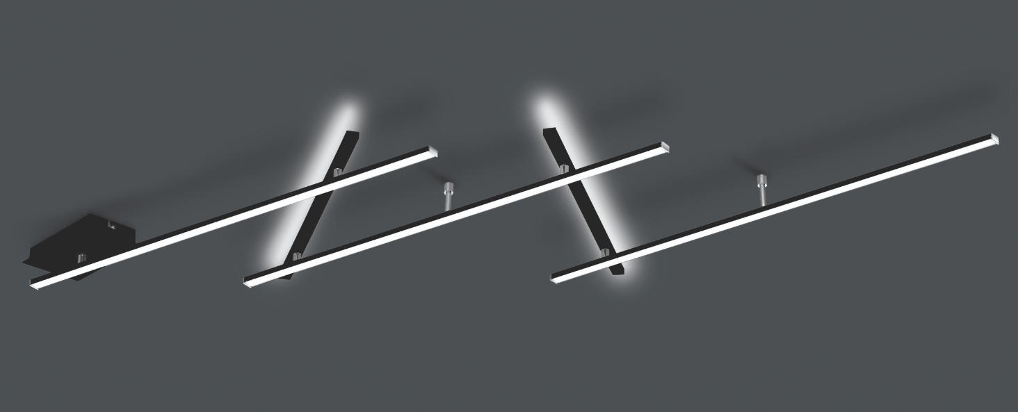 Een plafondlamp van het Duitse verlichtingsmerk Trio. De lamp is gemaakt van metaal en heeft een mooie mat zwarte kleur. De lamp straalt eenvoud en elegantie uit. De ingebouwde LED lamp heeft een wattage van 25W. De lamp kan met de bestaande wandschakelaar in drie standen worden gedimd. Het lichtpunt van deze lamp zit zowel boven als onder, wat een gaaf effect geeft. De lamp zou ook aan de wand bevestigd kunnen worden.