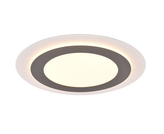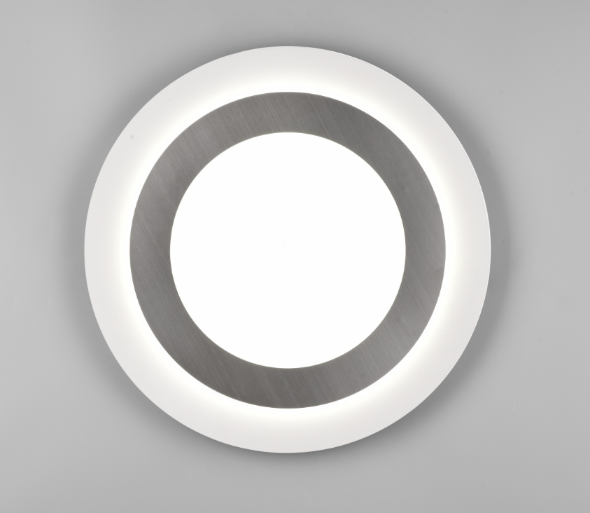 Een plafondlamp van het Duitse verlichtingsmerk Trio. De lamp is gemaakt van metaal en heeft een mooie nikkel-matte kleur. De lamp straalt eenvoud en elegantie uit. De ingebouwde LED lamp heeft een wattage van 42W. De lamp wordt geleverd met een afstandsbediening en heeft vele functies. Zo kan er bijvoorbeeld gekozen worden voor traploos dimmen, de lichtkleur aanpassen van warm naar koelwit licht (2700K-6500K), geheugenfunctie, timer en nachtlampfunctie.