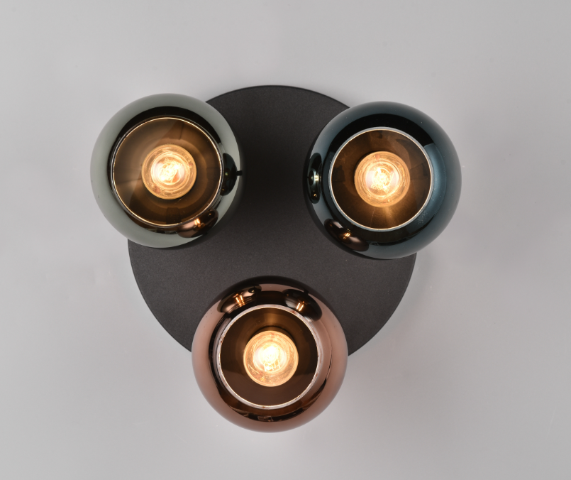 Een plafondlamp met modern/ retro-achtige uitstraling van het Duitse verlichtingsmerk Trio. De plafondlamp is gemaakt van metaal en glas in meerdere kleuren; blauw, groen en koperkleurig. De lamp wordt geleverd exclusief lichtbronnen met kleine E14 fittingen geschikt voor max. 3x 28W. De lamp kan goed worden geplaatst in eigenlijk alle ruimtes, bijvoorbeeld hal, woonkamer of slaapkamer.