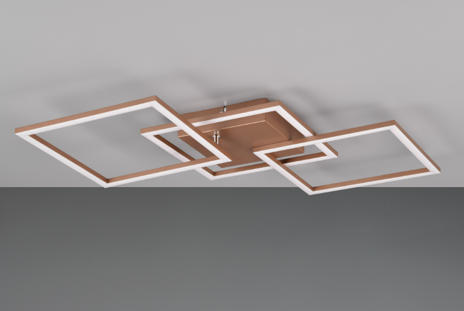 Een plafondlamp van het Duitse verlichtingsmerk Trio. De lamp is gemaakt van metaal en heeft een mooie kleur welke coffee wordt genoemd. De lamp straalt eenvoud en elegantie uit. De ingebouwde LED lamp heeft een wattage van 31W. De lamp heeft een warm witte kleurtemperatuur van 3000K. In vele ruimtes kan de lamp geplaatst worden, zoals hal, woonkamer of slaapkamer. De twee elementen zijn draaibaar waardoor een leuk uniek effect gecreeërd kan worden.