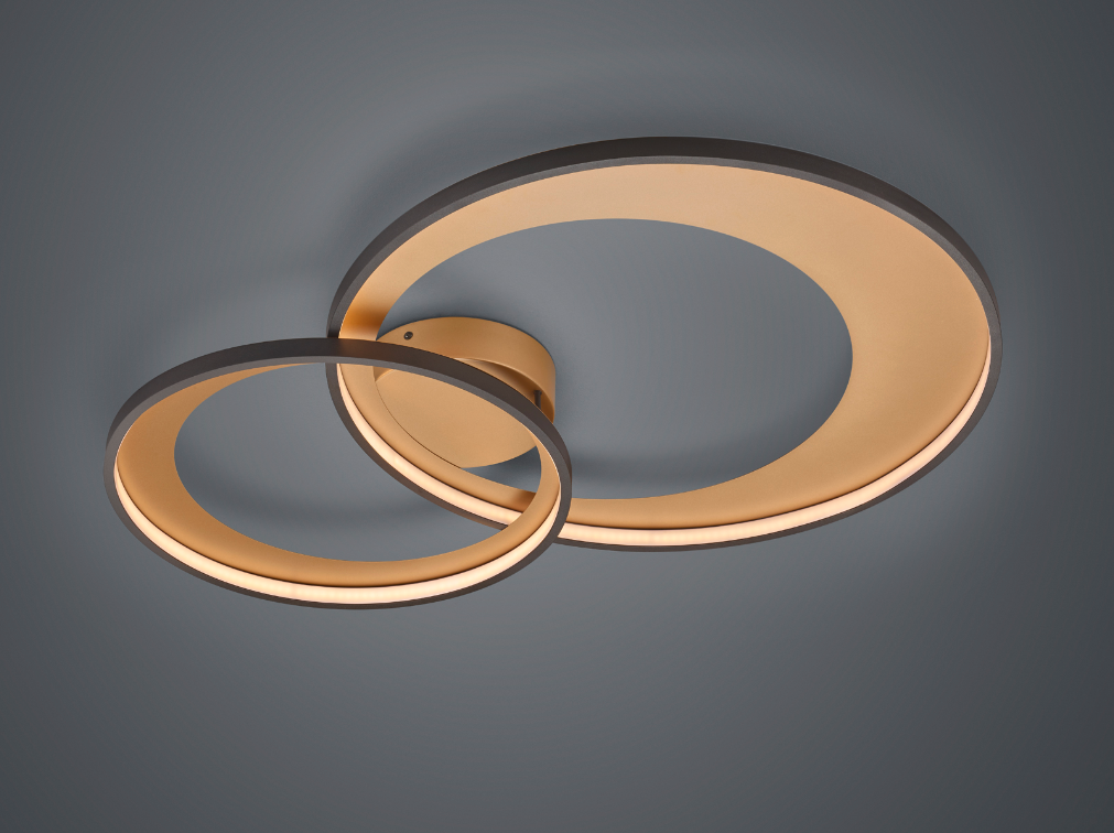 Een moderne plafondlamp met van het merk Trio. Deze plafonnière is gemaakt van metaal en uitgevoerd in de kleur mat zwart. Dankzij zijn design met twee ronde ringen zal deze lamp een prachtstuk zijn in uw interieur. De lamp kan goed worden toegepast in verschillende binnenruimtes, zoals bijvoorbeeld in de slaapkamer, woonkamer of ruime hal als basisverlichting. Deze plafondlamp wordt inclusief lichtbron geleverd, te weten een geïntegreerde SMD-LED lamp met een wattage van 36W. De lichtsinteniteit van deze armatuur kan via de normale lichtschakelaar trapgewijs op 3 verschillende niveaus ingesteld worden ( SWITCH-dimmer ). Deze lamp is enkel en alleen voor plafondmontage geschikt. Let wel, deze plafondlamp dient op een normale lichtschakelaar geplaatst te worden en is niet geschikt voor een externe dimmer.
