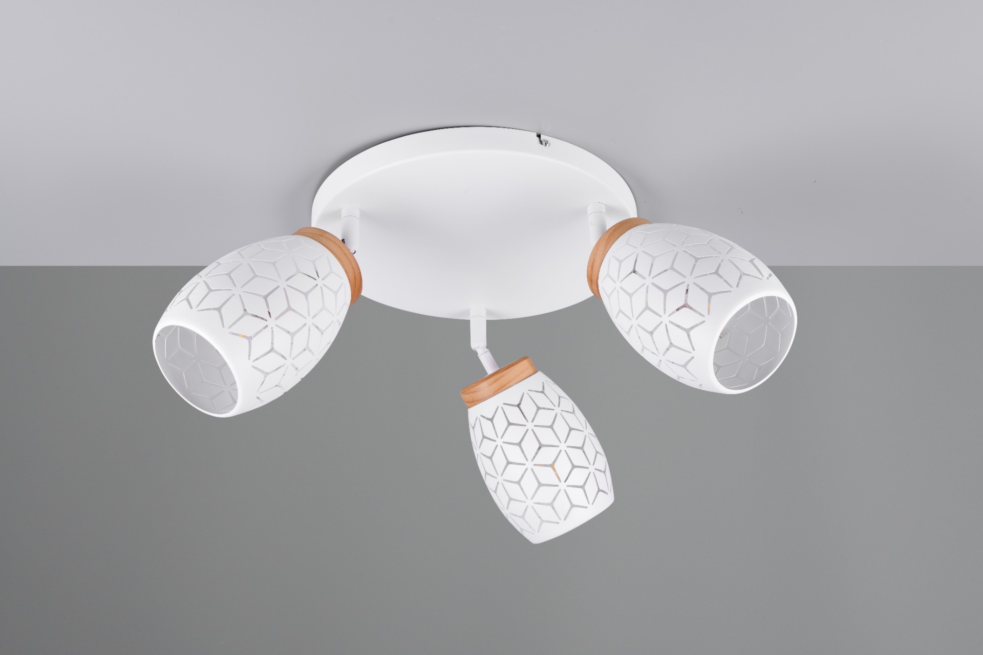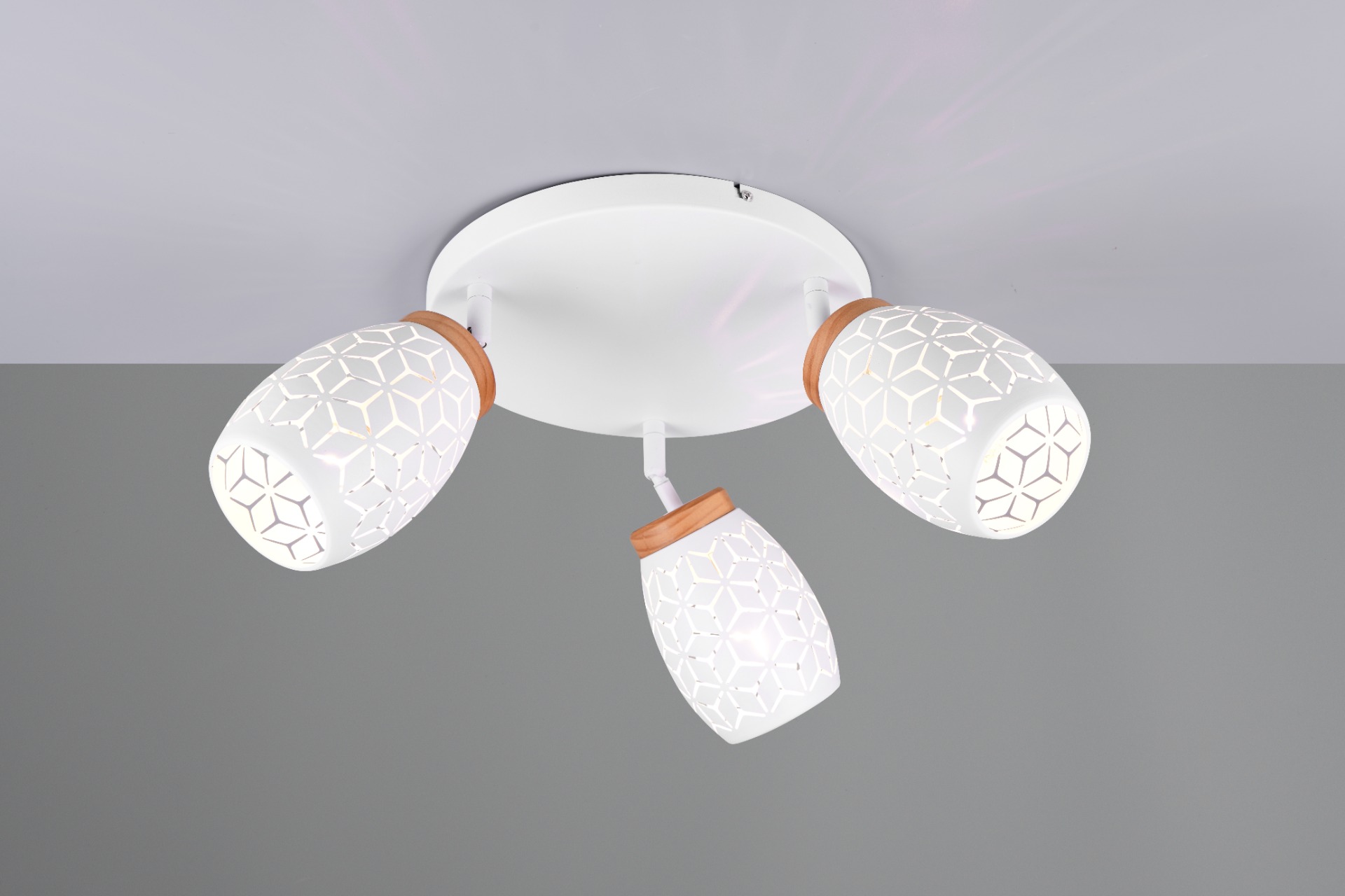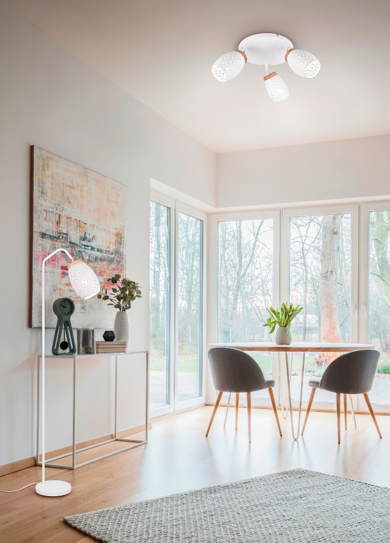 De Bidar plafondlamp met drie lichtpunten zorgt voor een warme en gezellige sfeer in uw huis. Door de mooie patronen schijnt het licht op een zachte manier naar buiten. Dit geeft een bijzonder en speels lichteffect in de woon of slaapkamer. De lamp heeft natuurlijke houten accenten die zorgen voor een warm en knus gevoel. Het matwitte metaal in combinatie met het hout en het moderne ontwerp maakt deze plafondlamp een echte blikvanger. De Bidar past goed in verschillende woonstijlen en geeft uw interieur een stijlvol accent. De lamp wordt geleverd exclusief 3x E14 lichtbronnen (max. 10W). Plaats de plafondlamp op een externe dimmer en u zet moeiteloos de juiste lichtsfeer neer. Leuk om te combineren met alle andere lampen uit de Bidar collectie.