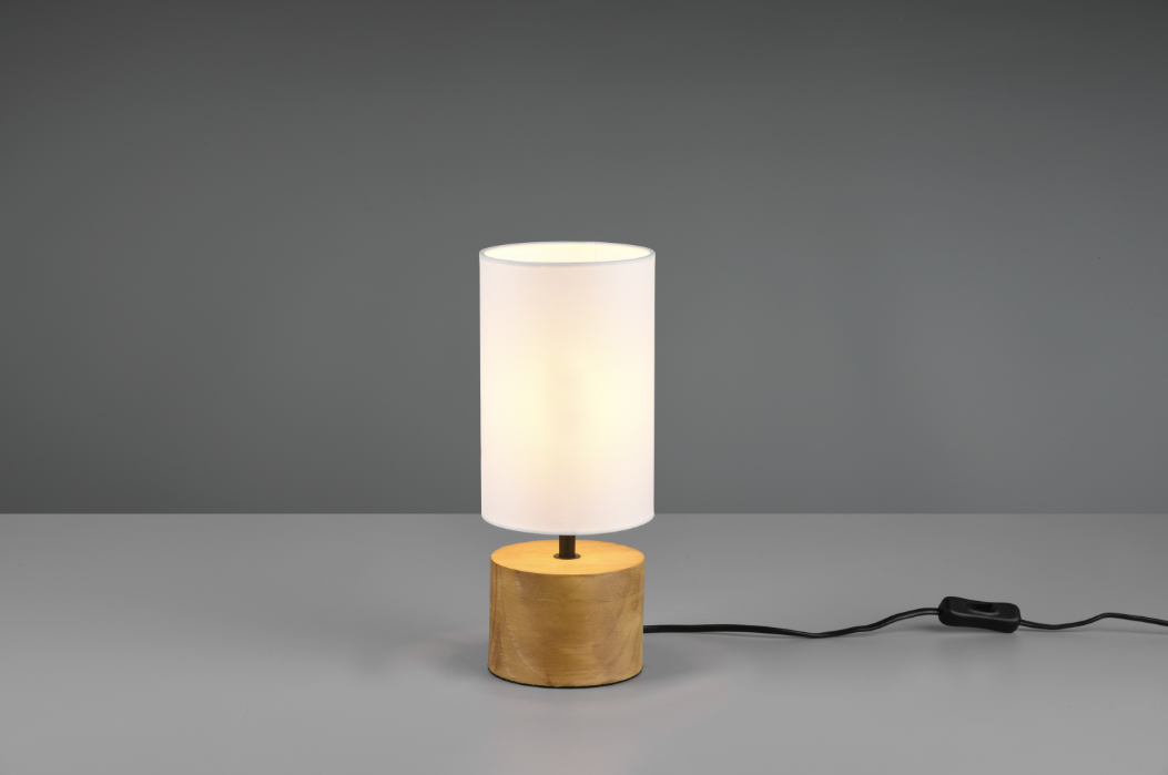 De woody is een houten tafellamp met een strakke ronde witte kap van textiel. Deze lamp van Trio is een leuke toevoeging aan uw slaapkamer, woonkamer of zelfs uw werkruimte. Door zijn natuurlijke uitstraling zal deze lamp in vele interieurstijlen tot zijn recht komen. De lamp is 30 cm hoog en heeft een E14 fitting geschikt voor een maximaal wattage van 25W. De lamp wordt zonder lichtbron geleverd.