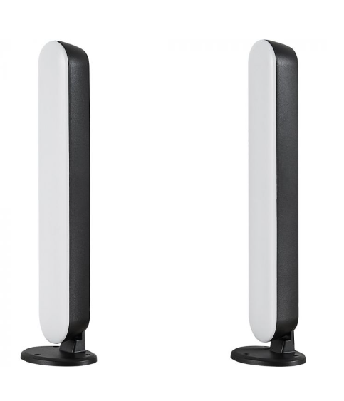 Twee super gave tafellampen met RGB-kleuren die ook wel de 'gamerslamp' wordt genoemd. Met de meegeleverde afstandsbediening kunnen de kleuren worden ingesteld maar ook andere functies worden gebruikt zoals een dynamische lichtbesturing, sound control, dimmen, geheugenfunctie etc. Ook is er een USB-aansluiting aanwezig. De lampen bestaan uit een set van twee, wat heel mooi geplaatst kan worden naast een PC-scherm of een TV. De lampen zijn gemaakt van kunststof in een zwarte kleur. De twee ingebouwde SMD-LED lampen hebben een wattage van 2x 2,5W.