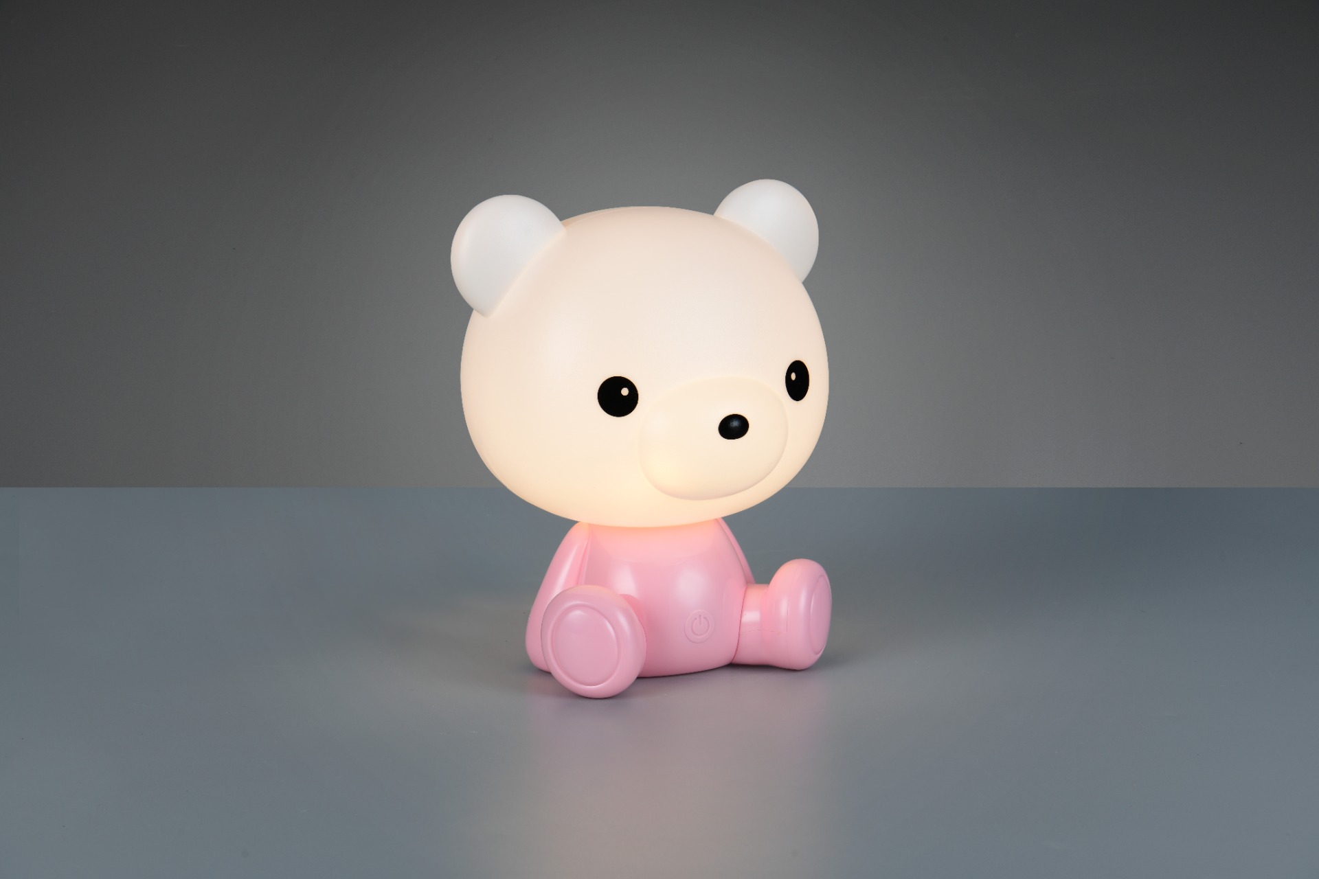 Deze schattige roze met witte tafellamp met een berenontwerp uit de RL-collectie is een sfeervolle toevoeging voor de kinderkamer. De Cutie tafellamp zorgt voor een gezellige verlichting en biedt de mogelijkheid om verschillende kleuren in te stellen dankzij de RGB-functie. Via de meegeleverde USB-kabel kan de lamp eenvoudig op het stopcontact worden aangesloten (let op de lamp is niet oplaadbaar, dus de USB kabel dient te alle tijden te zijn aangesloten). Gemaakt van wit kunststof en uitgerust met moderne LED-technologie, genereert deze lamp minder warmte dan traditionele halogeenlampen, waardoor hij extra veilig is voor gebruik in de kinderkamer.