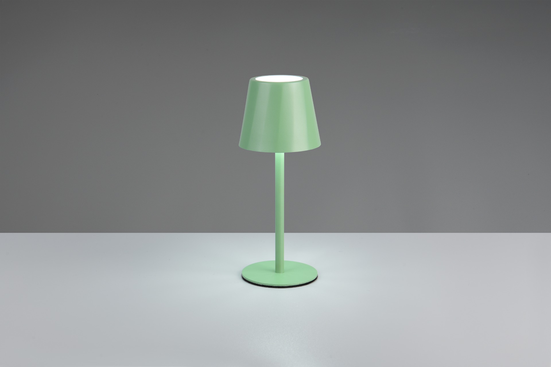 Deze leuke, oplaadbare, tafellampen van Trio zijn echt een must-have voor in de tuin. Je kan ze namelijk eenvoudig opladen via de meegeleverde USB kabel om vervolgens overal mee naar toe te nemen. Zo heb je overal in je tuin licht zonder dat je direct stroom nodig hebt. De lampjes zijn IP44 en dus geschikt voor buiten. Het fijne aan de lamp is dat je deze kan dimmen in 3 standen (25%-50%-100%) door boven op de lampenkap te drukken en ook nog eens kan switchen van warm wit (2700K) naar koel wit licht (6500K). Zo pas je het licht ook nog eens aan naar wens. Met een volgeladen accu gaat de lamp ongeveer 4 uur mee (ongeveer 3-4 uur tot de lamp is opgeladen). Deze tafellamp is in verschillende kleuren beschikbaar en het betreft hier een prachtige pistache groene kleur.