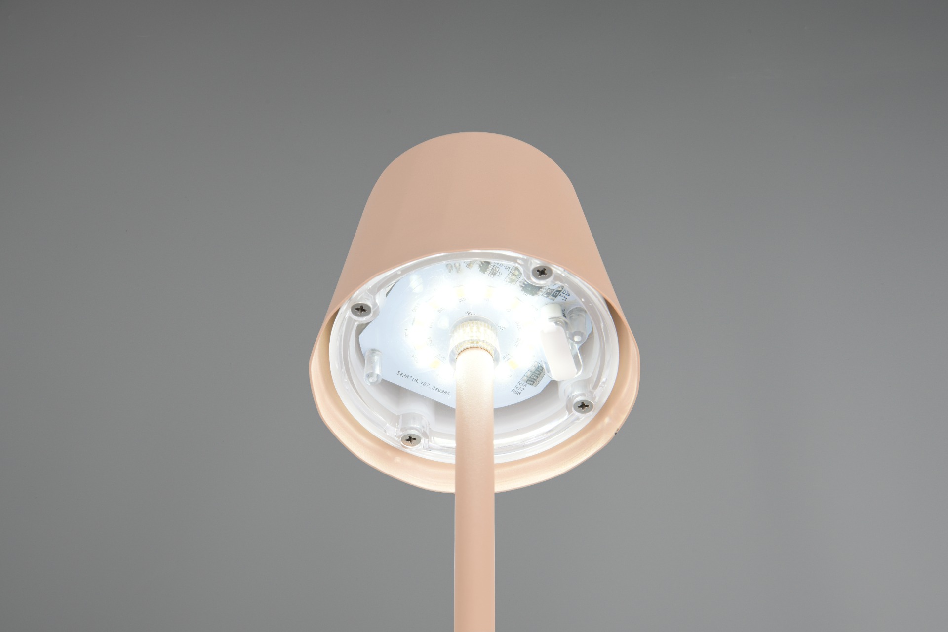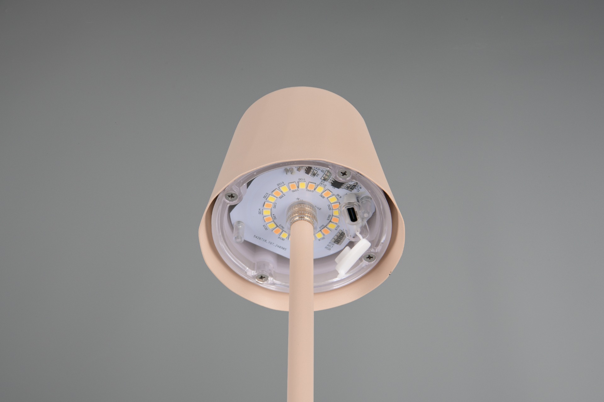 Deze leuke, oplaadbare, tafellampen van Trio zijn echt een must-have voor in de tuin. Je kan ze namelijk eenvoudig opladen via de meegeleverde USB kabel om vervolgens overal mee naar toe te nemen. Zo heb je overal in je tuin licht zonder dat je direct stroom nodig hebt. De lampjes zijn IP44 en dus geschikt voor buiten. Het fijne aan de lamp is dat je deze kan dimmen in 3 standen (25%-50%-100%) door boven op de lampenkap te drukken en ook nog eens kan switchen van warm wit (2700K) naar koel wit licht (6500K). Zo pas je het licht ook nog eens aan naar wens. Met een volgeladen accu gaat de lamp ongeveer 4 uur mee (ongeveer 3-4 uur tot de lamp is opgeladen). Deze tafellamp is in verschillende kleuren beschikbaar en het betreft hier een prachtige beige zandkleur.