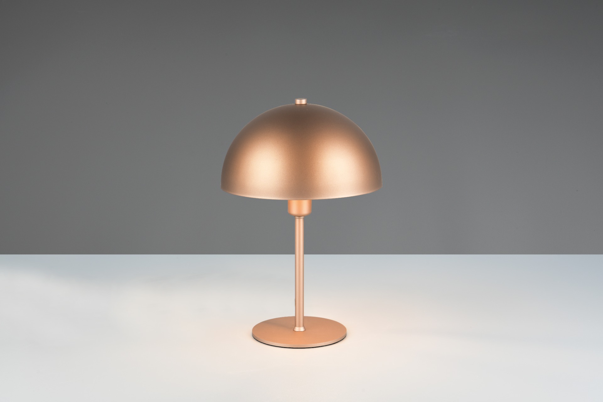 Een tafellamp van het Duitse verlichtingsmerk Trio met een klassieke look. De lamp is gemaakt van metaal en heeft een koffie-matte kleur. De lamp wordt exclusief lichtbron geleverd. Er is plaats voor één E14-lichtbron (max. 28W). De tafellamp kan goed worden geplaatst in verschillende ruimtes zoals woonkamer en slaapkamer, bijvoorbeeld op een bijzettafeltje of als nachtlampje. De Nola heeft een snoerschakelaar waarmee u de lamp aan of uit kunt schakelen. Ook verkrijgbaar in een groter formaat in dezelfde stijl en kleur.