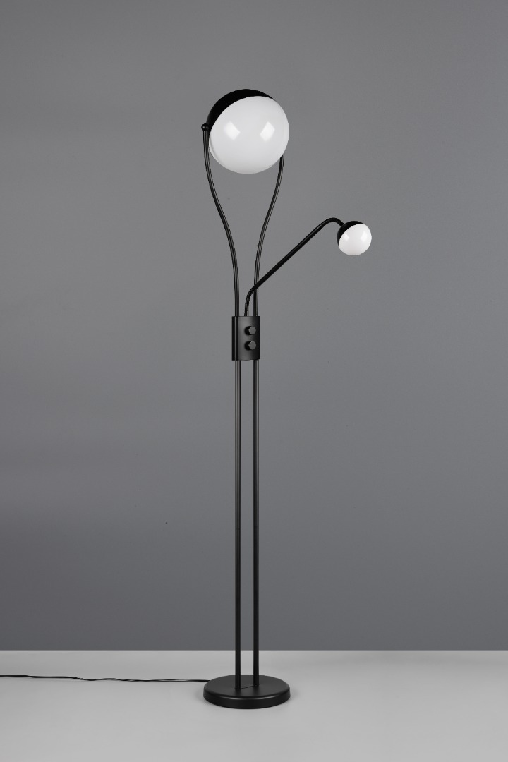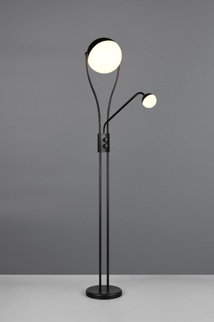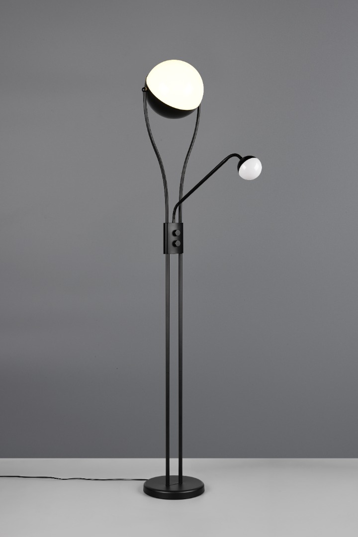 Deze elegante vloerlamp uit de Chris-serie van Trio komt uitstekend tot zijn recht in uw kantoor of woonkamer. De lamp wordt geleverd met twee lichtbronnen, die afzonderlijk aan- en uitgezet kunnen worden en flexibel verstelbaar zijn, zodat u ze in elke gewenste richting kunt richten. Dankzij de geïntegreerde dimmer is de lichtsterkte traploos regelbaar, wat zorgt voor een aangename sfeer in elke ruimte. De lamp is uitgevoerd in een moderne mat zwarte kleur. Met een IP20-classificatie is de vloerlamp beschermd tegen stof en daardoor gemakkelijk stofvrij te houden. Plaats de Chris vloerlamp bijvoorbeeld naast de bank; de kleinere lamp is ideaal om bij te lezen. Verkrijgbaar in meerdere kleuren.