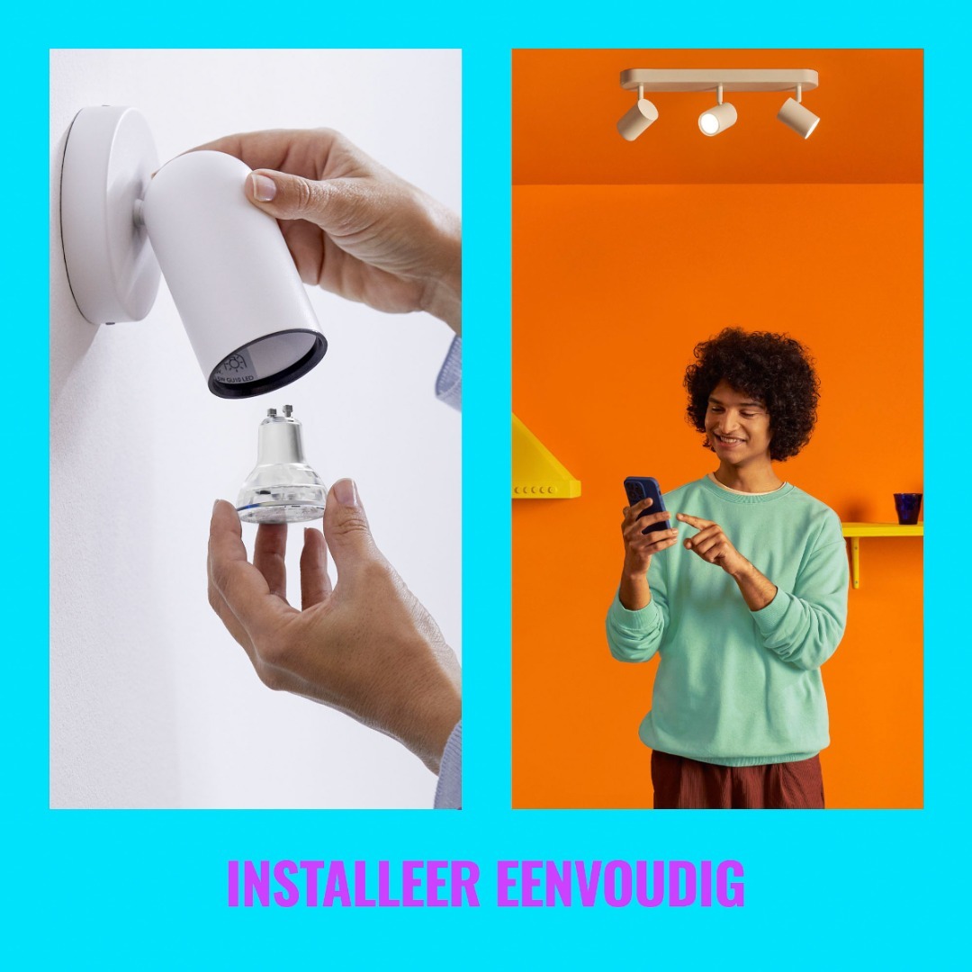 Met de slimme verlichting van WiZ kunt u alle kanten op! De lampen zijn gelijk aan te sluiten via uw Wi-Fi netwerk, dus zonder gedoe. Download de app en ga aan de slag met het dimmen van de lampen, timers instellen en de vele andere mogelijkheden.
