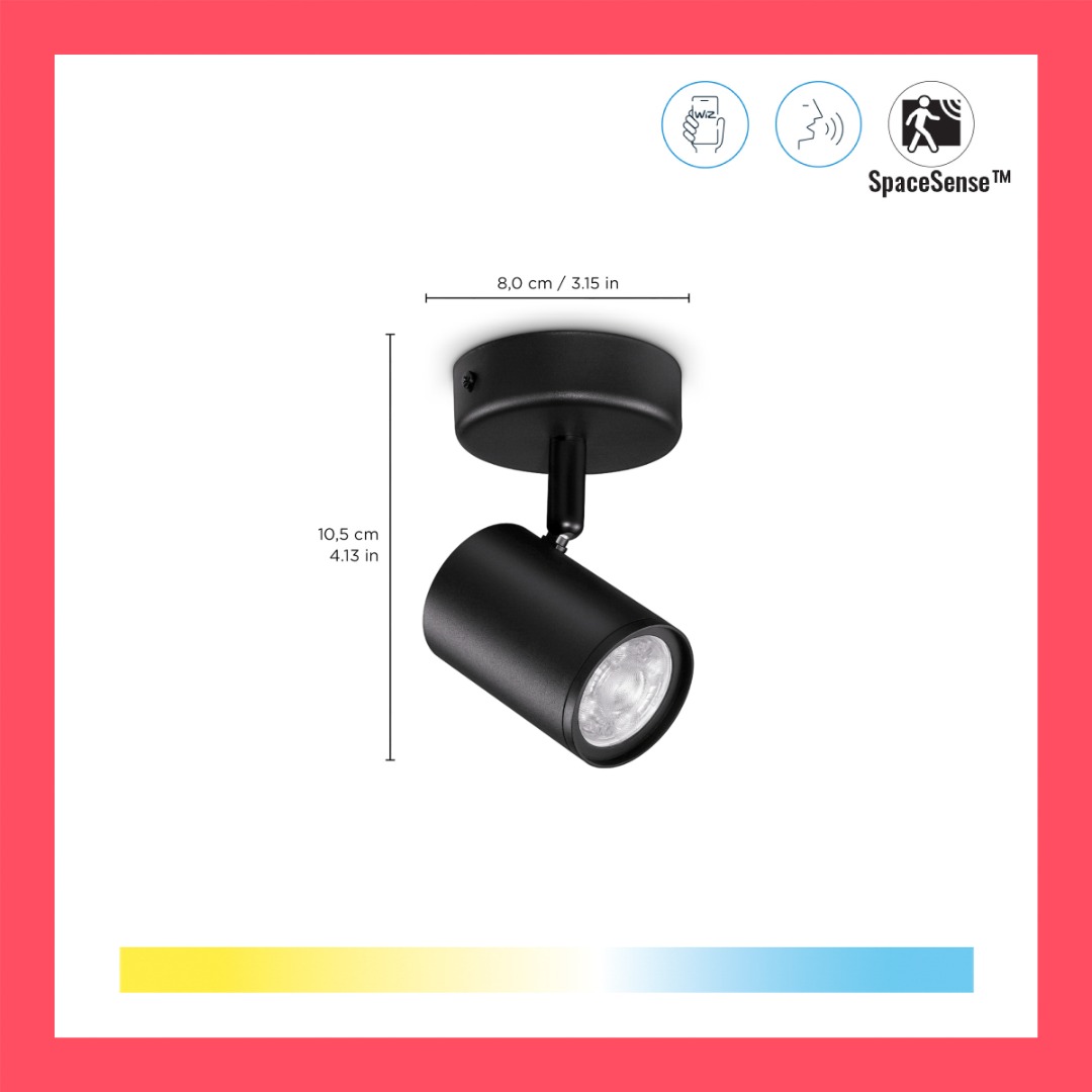 Een moderne opbouwspot uit de WiZ collectie. De lamp beschikt over Warm tot Koelwit dimbaar licht, instelbaar van 2700-6500 Kelvin. Kies dus de juiste sfeer voor het juiste moment. Gemakkelijk te dimmen in de WiZ app, zonder ingewikkeld gedoe van het installeren van een wanddimmer. Simpelweg de lamp aansluiten en zoeken in de WiZ app en gebruiken maar!