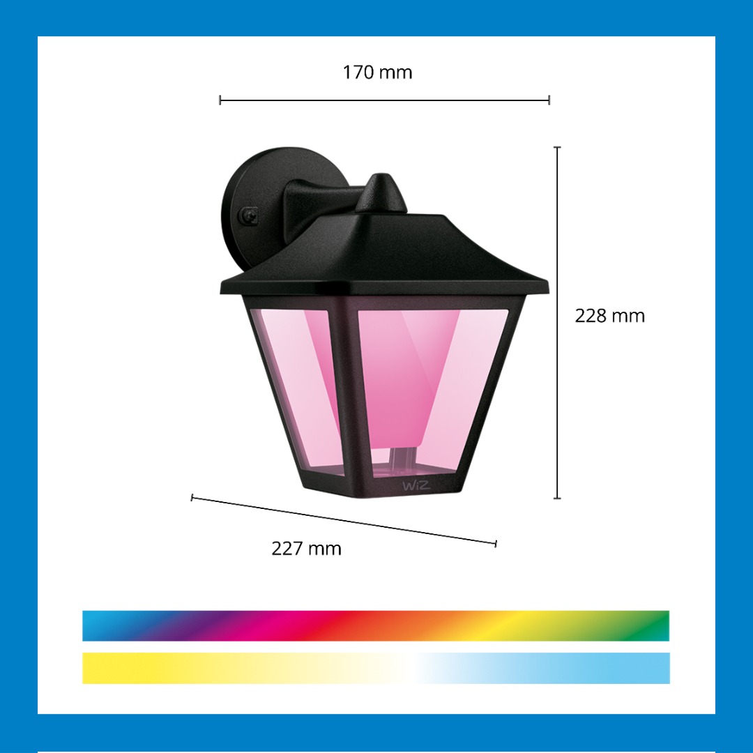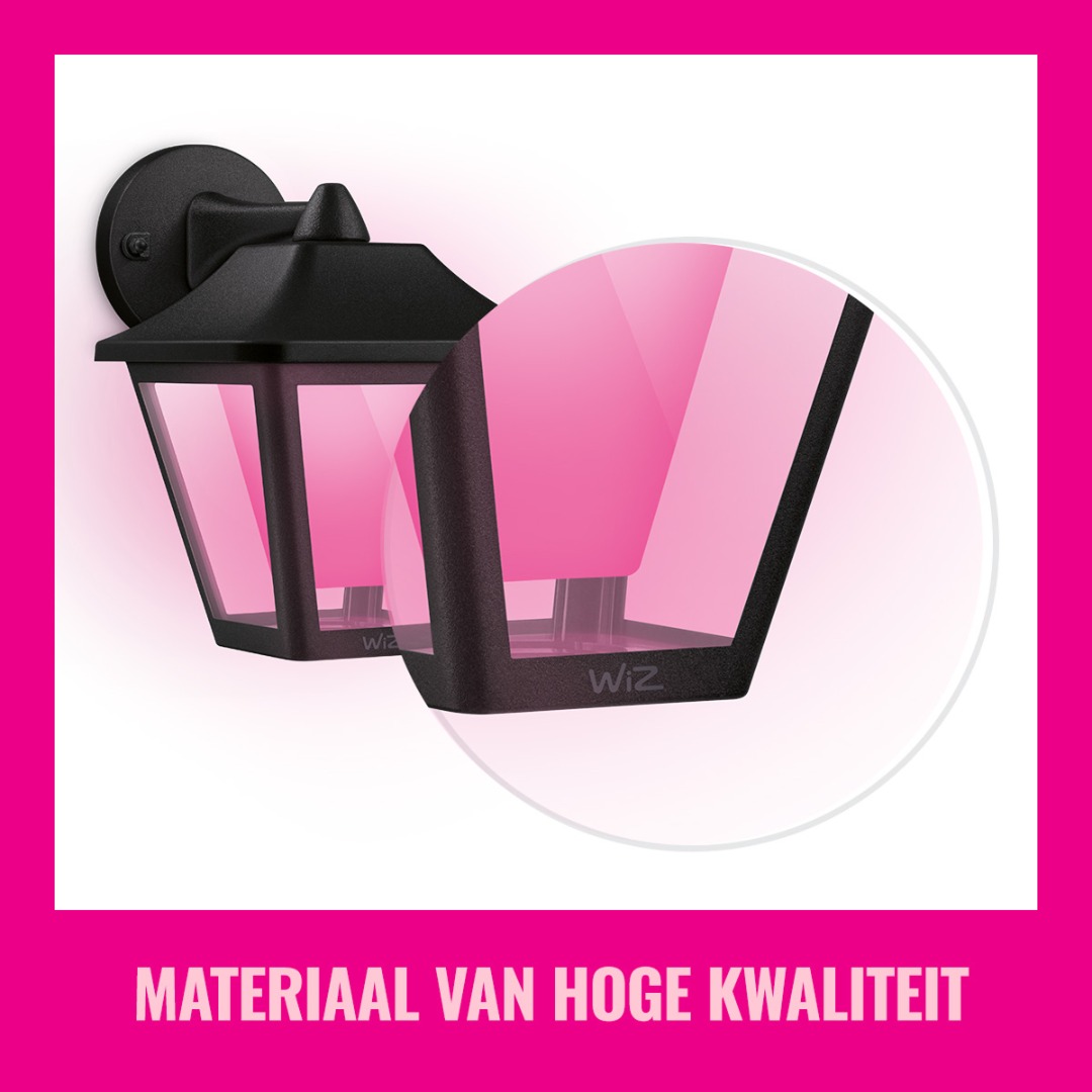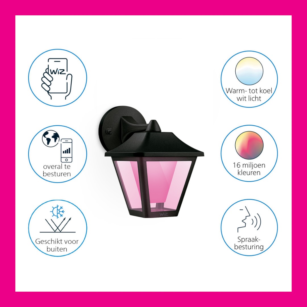 Een leuk klassiek wandlampje van Wiz. De lamp heeft een modern tintje en hangt vast prachtig aan uw wand of naast de deur. Speel met de 16 miljoen kleuren of diverse wittinten om de lamp te matchen met de sfeer van het moment. Installeer de lamp, voeg hem toe in de Wiz app en genieten maar. Bovendien kan je de lamp ook nog eens bedienen door middel van spraak en stel je voorafgestelde scènes in. Speel in de Wiz app met de diverse instellingen en je kan alle kanten op met deze lamp. De lamp is ook Matter-gecertificeerd dus ook te combineren met andere matter-gecertificeerde apparaten.