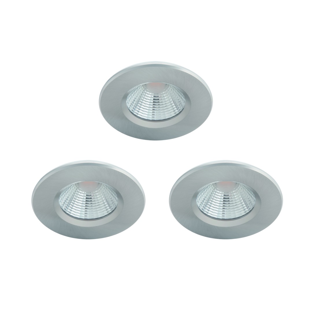 Moderne, nikkelkleurige inbouwspots, ideaal geschikt voor in de badkamer. De spots zijn dimbaar en beschikken over EyeComfort. Fijn licht voor de ogen! De inbouwspotjes bieden volgens hun IP65-classificatie bescherming tegen binnendringend vocht en zijn in de meeste standaard verlaagde plafonds te monteren, ook recht boven de douche of het bad. Het betreft hier een set van 3 stuks.