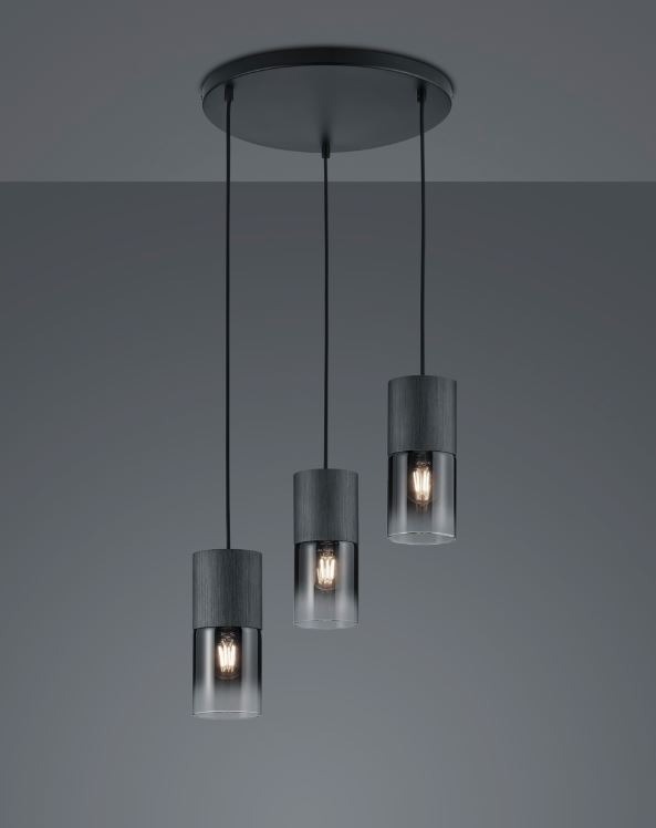 Een mooie hanglamp van het merk Trio. Deze moderne lamp is gemaakt van glas en metaal en kan goed worden toegepast in de woonkamer of boven de eettafel in de eetkamer. Door de combinatie van het mat zwarte metaal en het rookglas brengt deze armatuur sfeer aan het interieur. Deze hanglamp beschikt over drie cillinders, die elk afzonderlijk in hoogte verstelbaar zijn. Elke cillinder biedt plaats aan een E27-fitting (geschikt voor een max. wattage van 28W). Deze armatuur wordt exclusief lichtbronnen geleverd. U kunt hierdoor zelf bepalen hoeveel licht u wilt hebben.