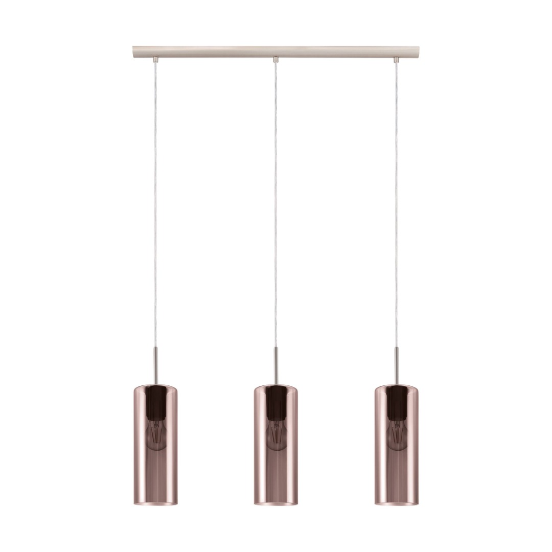 Een mooie hanglamp uit de hanglampen collectie van Eglo. De lamp heeft een simplistische uitstraling, gemaakt van staal in een nikkel-matte kleur met gestoomd glas in een koperkleur. De lamp wordt exclusief lichtbron geleverd en heeft E27 fittingen geschikt voor max. 3x 15W. Deze lamp staat goed in de eetkamer, bijvoorbeeld boven een mooie rechthoekige eettafel.