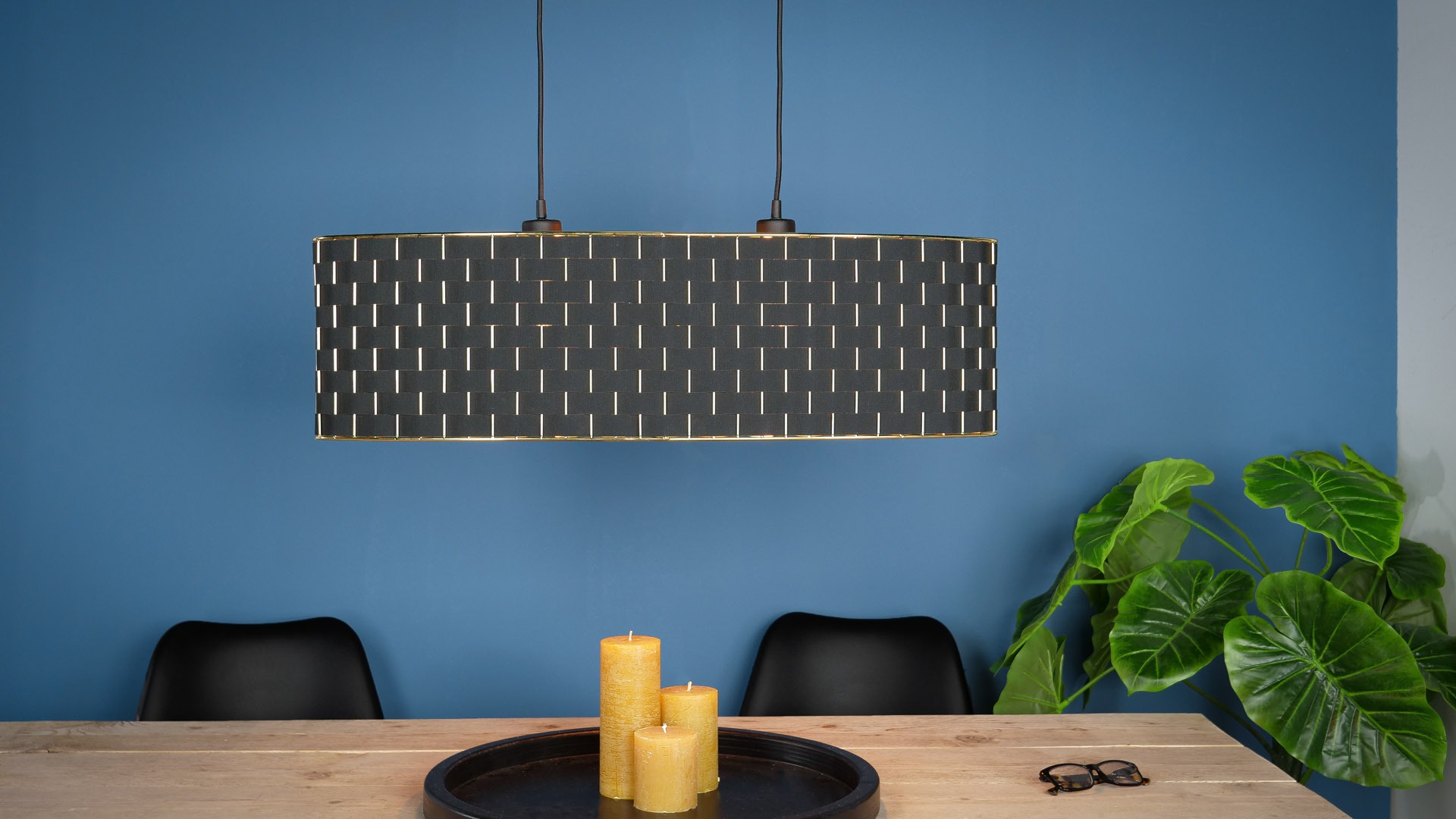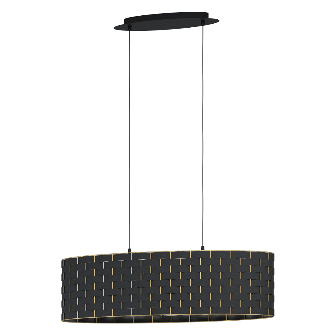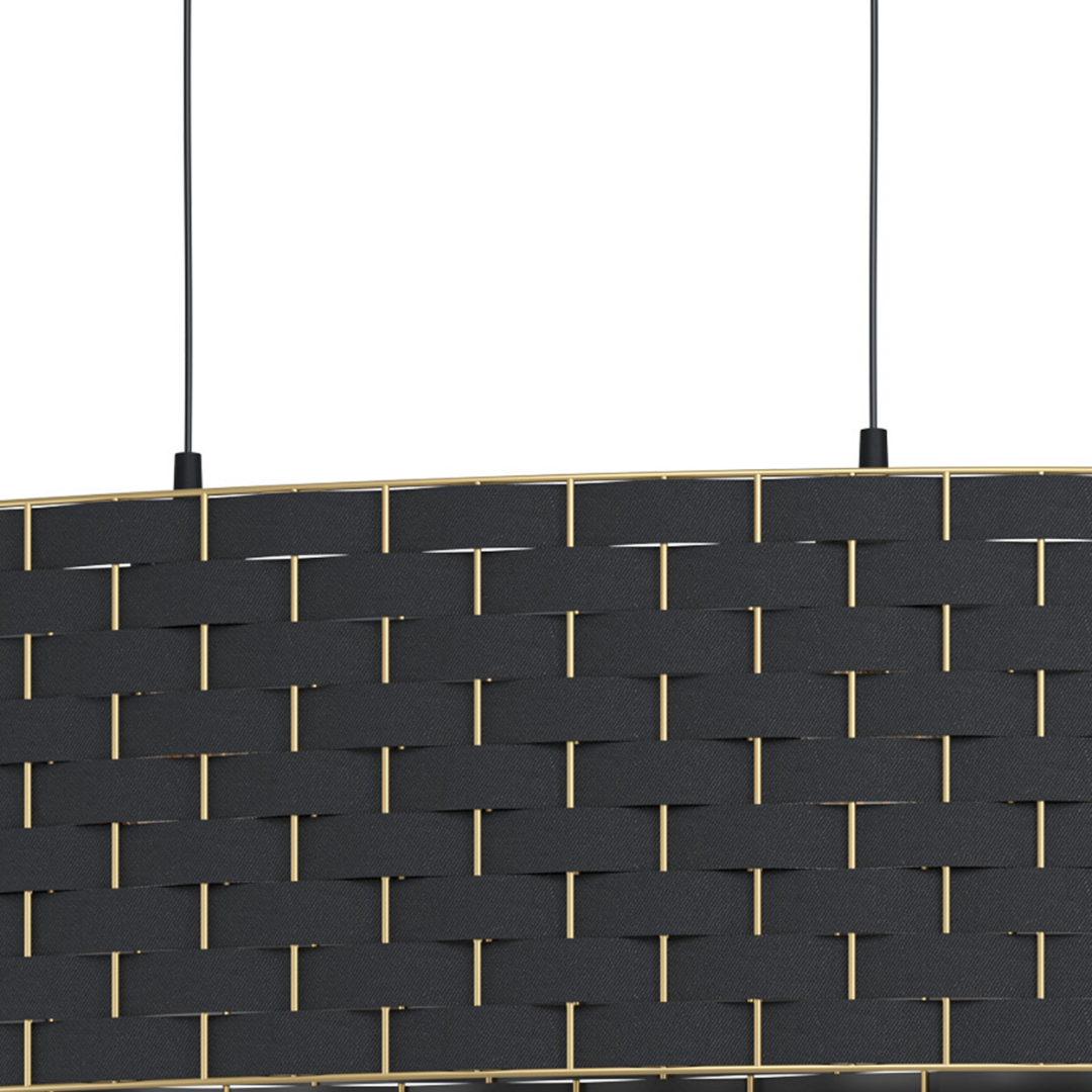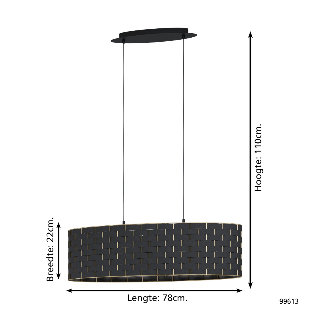 Een mooie hanglamp uit de hanglampen collectie van het merk Eglo. De lamp is gemaakt van staal en textiel in de kleur zwart met geelkoperen accenten. De lamp wordt geleverd exclusief E27 lichtbronnen geschikt voor max. 2x 40W. Deze lamp kan goed geplaatst worden in de woonkamer of eetkamer, bijvoorbeeld boven een eettafel.