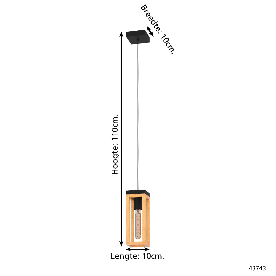 Een hanglamp uit de collectie van Eglo met een moderne/landelijke uitstraling. De lamp is gemaakt van staal en hout in de kleuren zwart en bruin. Deze lamp is een mooi voorbeeld van een lamp die je in de eetkamer kan hangen boven een eettafel. Ook elders in de woonkamer is deze hanglamp goed te plaatsen. De lamp wordt exclusief lichtbron geleverd en is geschikt voor max. 1x 40W met E27-fitting.