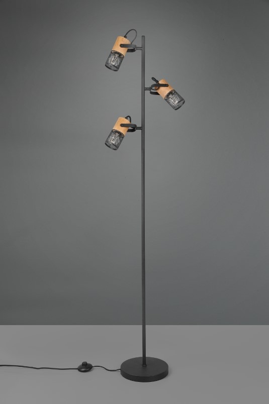 Een mooie vloerlamp van het merk Trio. Deze staande lamp is gemaakt van hout en draadmetaal. De vloerlamp kan goed worden geplaatst in de woonkamer naast de bank of een fauteuil bijvoorbeeld, om u van een gezellige gloed te voorzien. Er is plaats voor drie E14-fittingen die geschikt zijn voor een max. wattage van 15W. Deze lamp wordt exclusief lichtbron geleverd. Wij raden goudkleurige LED kogellampjes aan. Deze armatuur wordt inclusief voetschakelaar geleverd. Doordat de kapjes kantelbaar zijn, kan de lichtbundel eenvoudig in de juiste richting worden gericht.