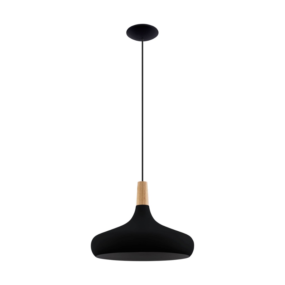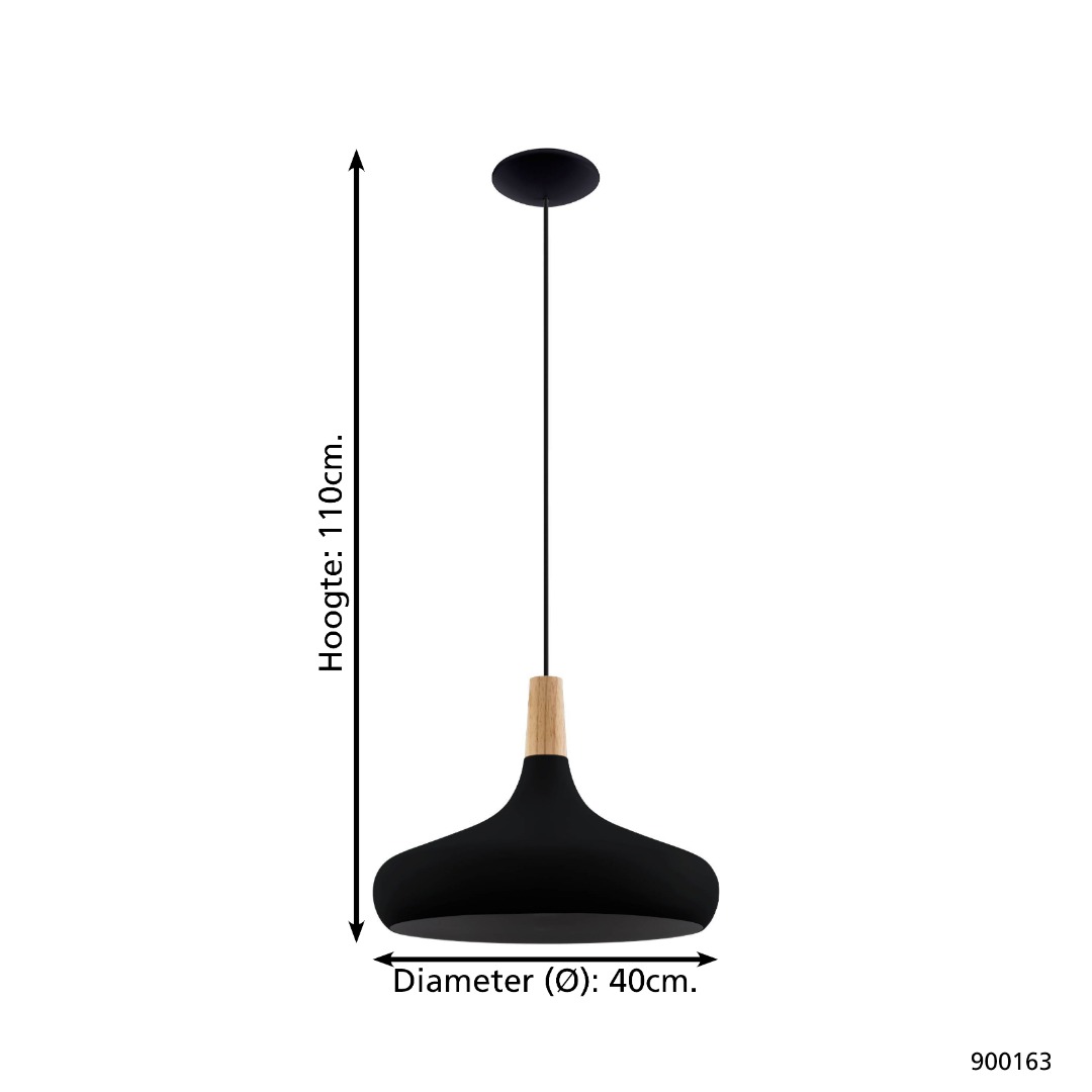 Een mooie hanglamp uit de hanglampen collectie van Eglo. De lamp heeft een moderne en neutrale look. De lamp wordt exclusief lichtbron geleverd en is geschikt voor een wattage van max. 40W met fittingmaat E27. De hanglamp is gemaakt van staal en hout en heeft een zwarte kleur met een bruin accent. Deze lamp staat goed in de eetkamer, bijvoorbeeld boven de eettafel, maar kan ook zeker elders in de woonkamer worden geplaatst.