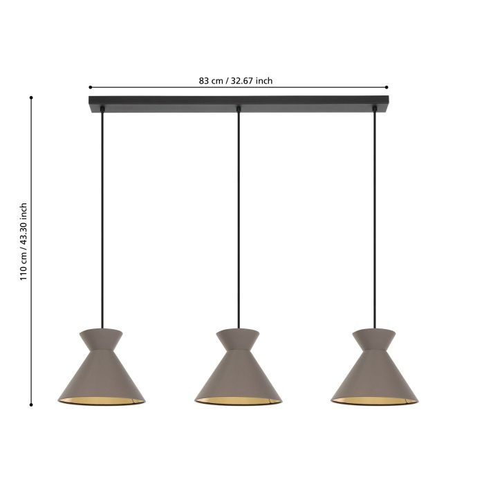 Een mooie hanglamp uit de hanglampen collectie van Eglo. De lamp heeft een moderne en unieke uitstraling en is gemaakt van staal en textiel in een zwarte kleur met een goudkleurige binnenkant van de kap. De lamp wordt exclusief lichtbronnen geleverd en is geschikt voor een wattage van max. 3x 40W. Deze lamp staat goed in de eetkamer, bijvoorbeeld boven een eettafel.