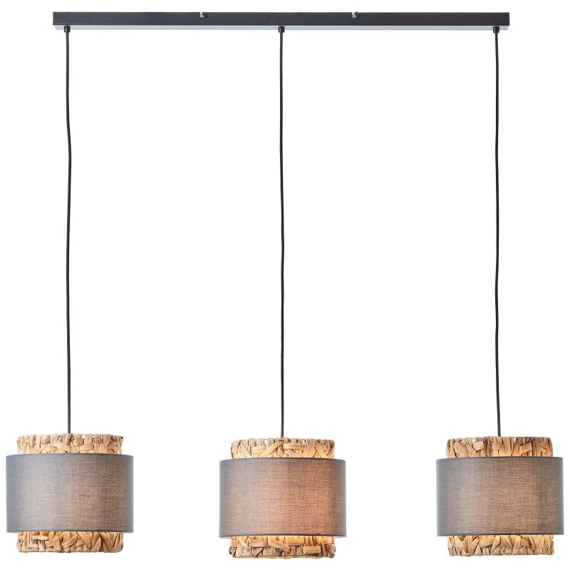 Een mooie hanglamp uit de collectie van het merk Brilliant gemaakt van metaal, textiel en de bijzondere stof waterhyacint. De lamp heeft de kleuren grijs en beige/naturel kleur, wat een warme en gezellig uitstraling geeft. De lamp wordt geleverd exclusief lichtbronnen met E27 fittingen en is geschikt voor max. 3x 60 watt. Deze lamp kan goed geplaatst worden in verschillende ruimtes, bijvoorbeeld in de eetkamer boven een eettafel. De lamp heeft een mooie rustige, tijdloze uitstraling en past goed in ieder interieursoort, vooral bij landelijk.